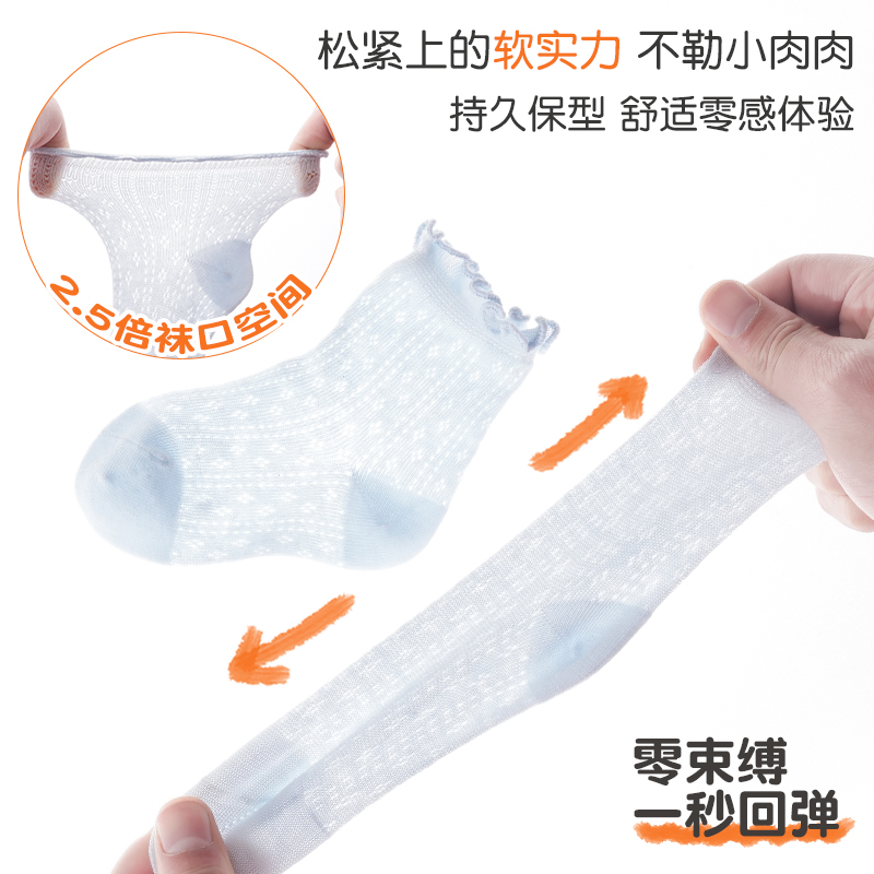 宝宝袜子夏季薄款网眼儿童女松口无骨透气薄款夏天新生婴儿中筒袜