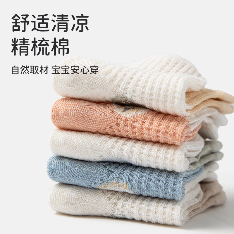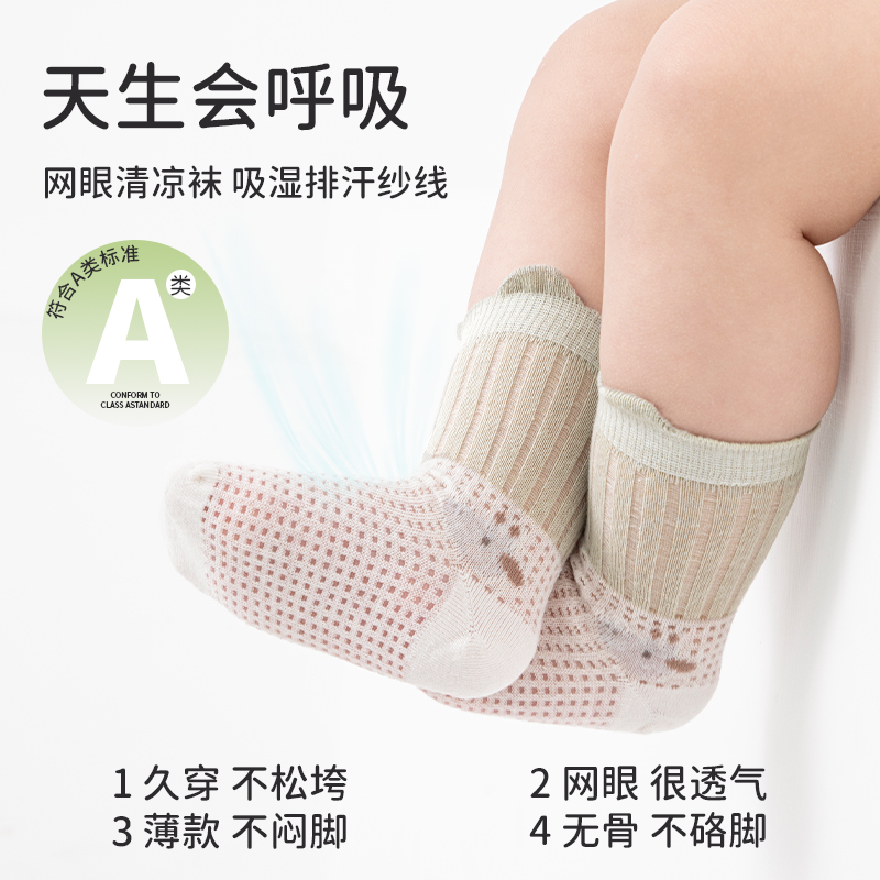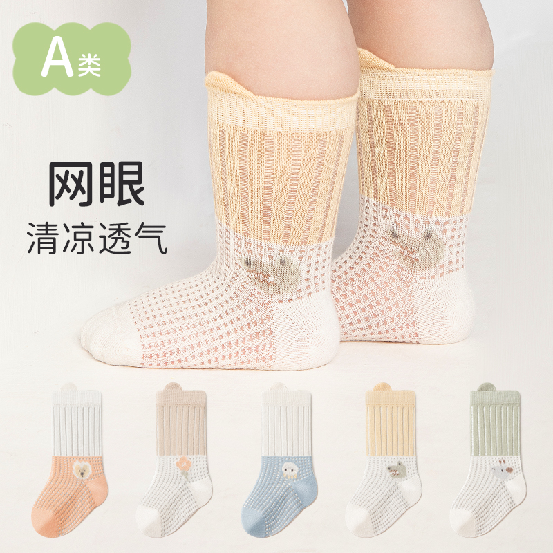 宝宝袜子夏季薄款纯棉网眼透气松口无骨新生幼儿初生婴儿中长筒袜