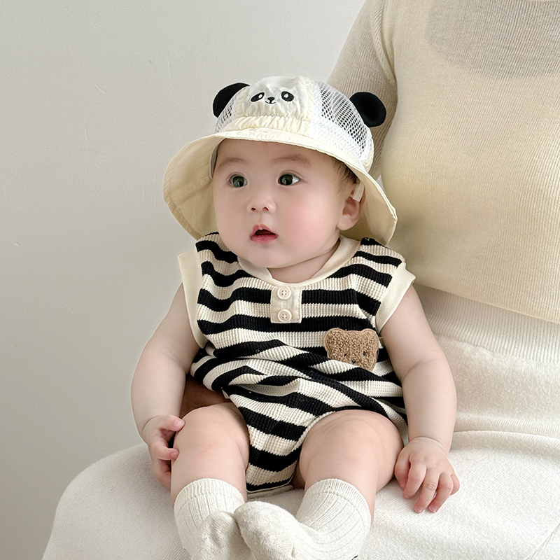 婴儿帽子夏季薄款透气网眼遮阳防晒可爱渔夫帽男女宝宝小月龄盆帽