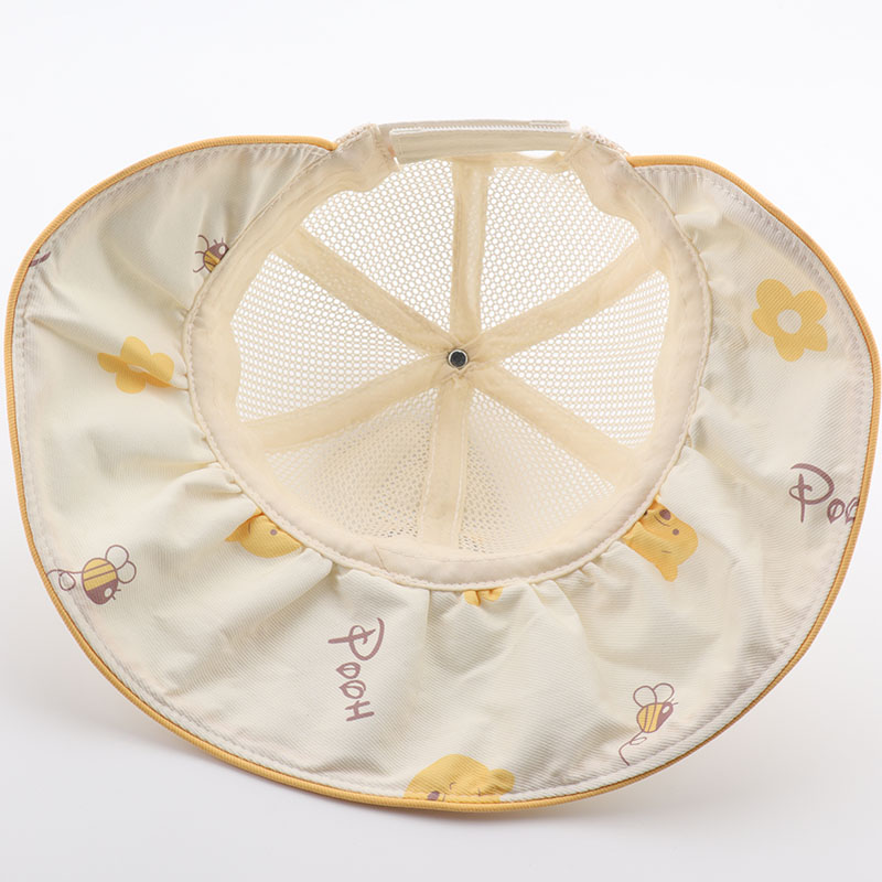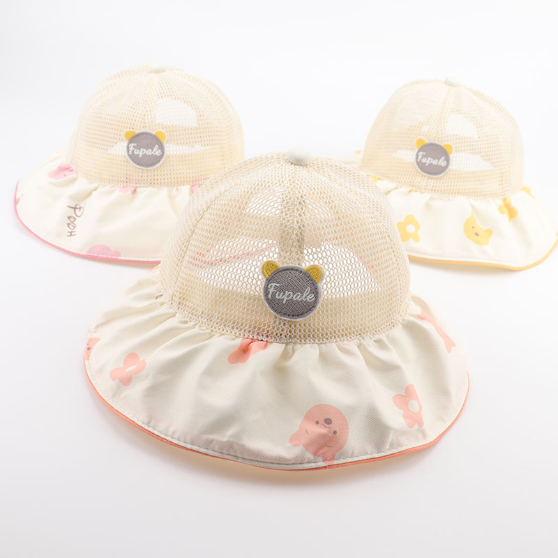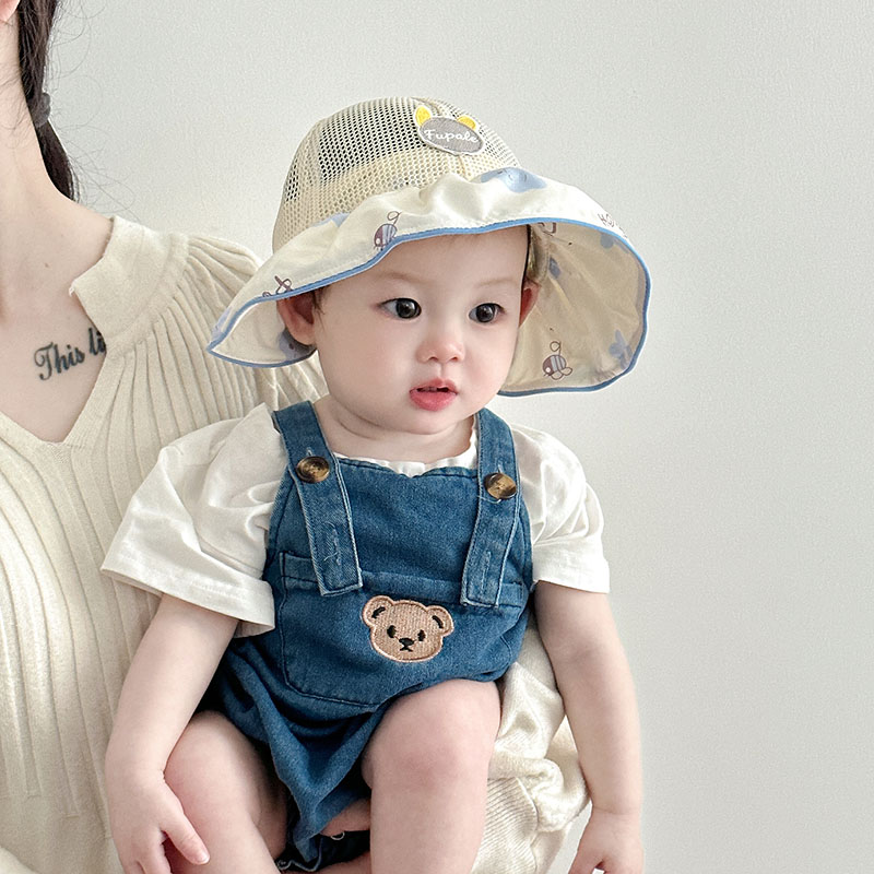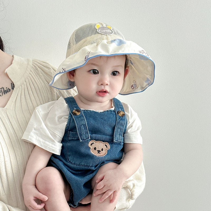 婴儿防晒帽子夏季薄款男童小熊渔夫帽大檐宝宝网眼透气太阳遮阳帽