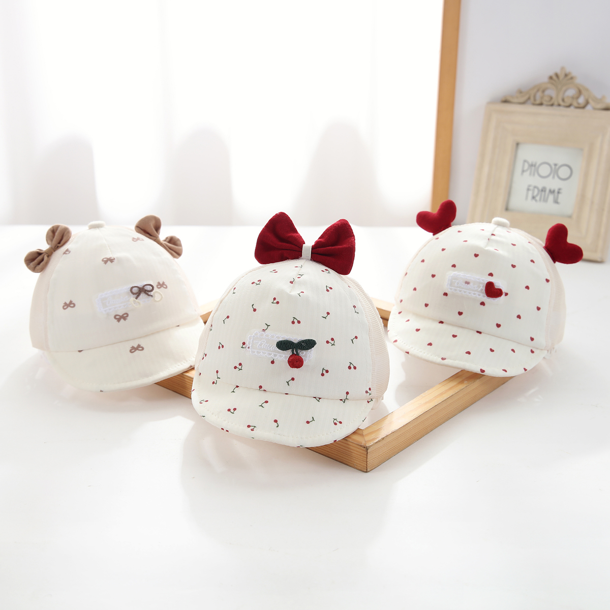 印花半网小软檐-樱桃蝴蝶结