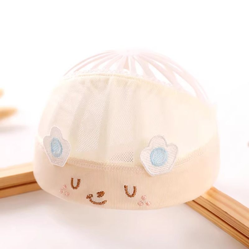 婴儿帽子春夏薄款男宝宝女单层棉布薄款新生儿护卤门气门帽空顶帽