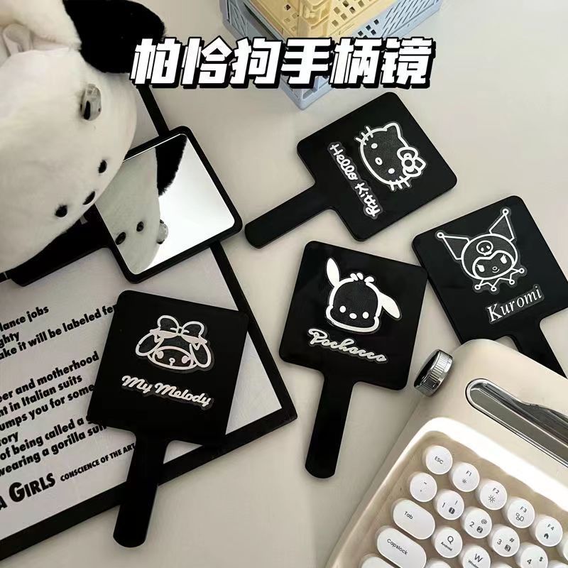 黑色三丽鸥手持镜方便携带小红书同款化妆镜高级感ins卡通随身镜