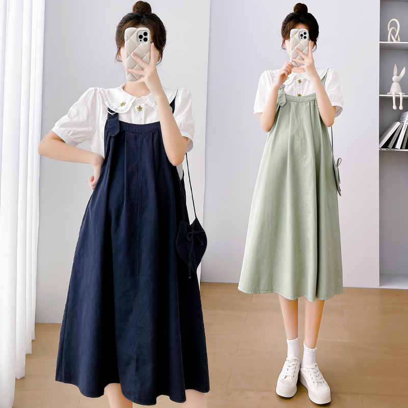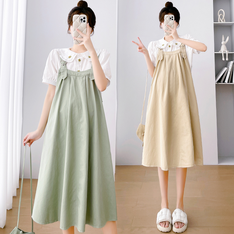 孕妇夏装背带连衣裙2025新款小个子夏款裙子孕妈妈夏季套装两件套