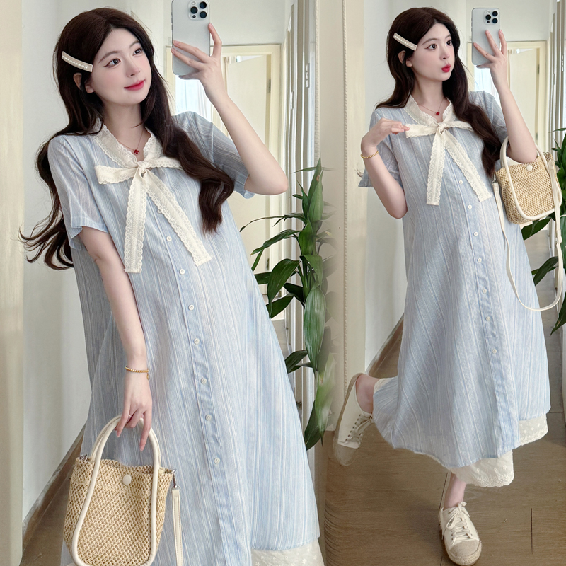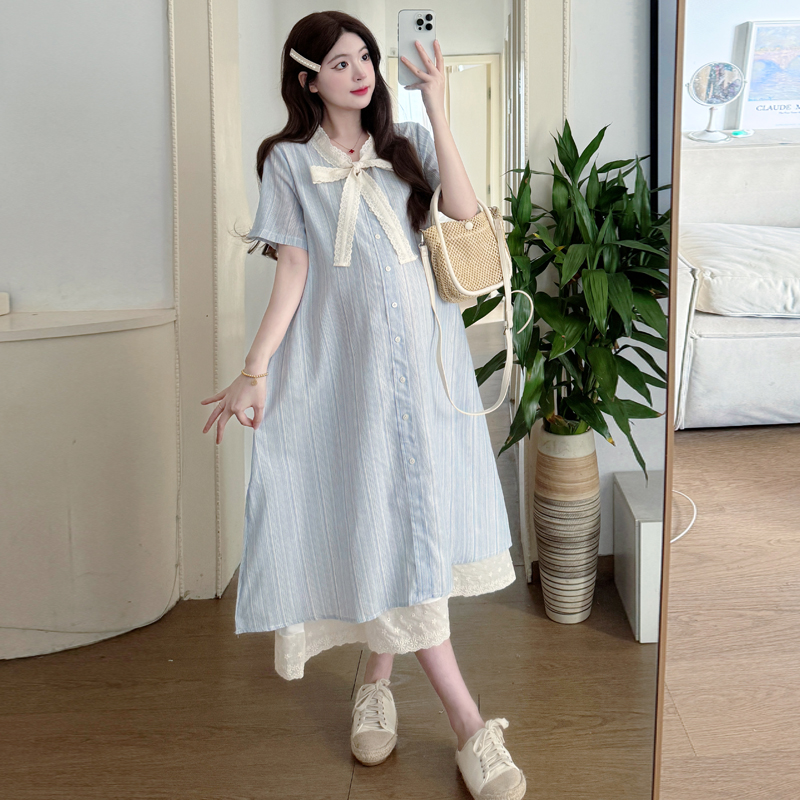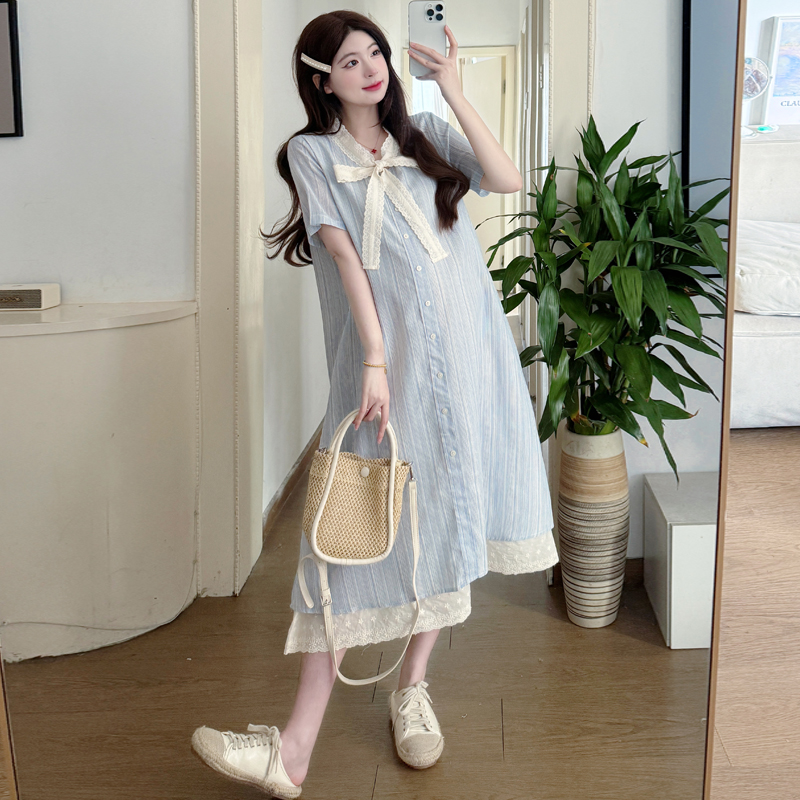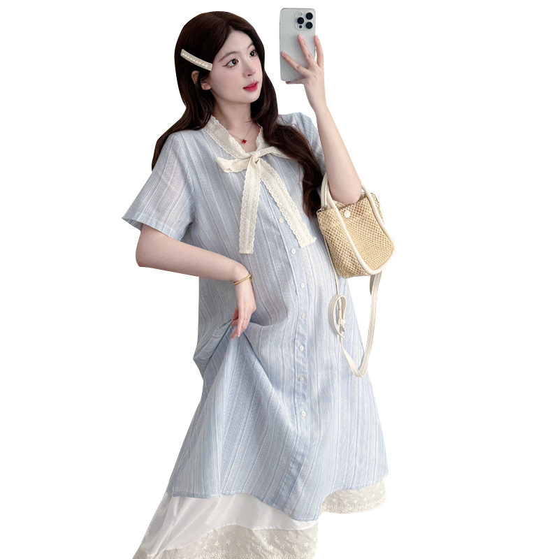 孕妇连衣裙新款韩版时尚蕾丝拼接假两件宽松甜美中长款裙子