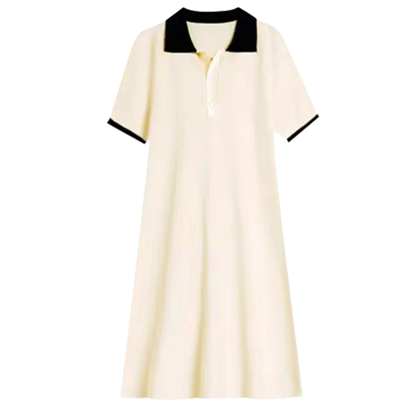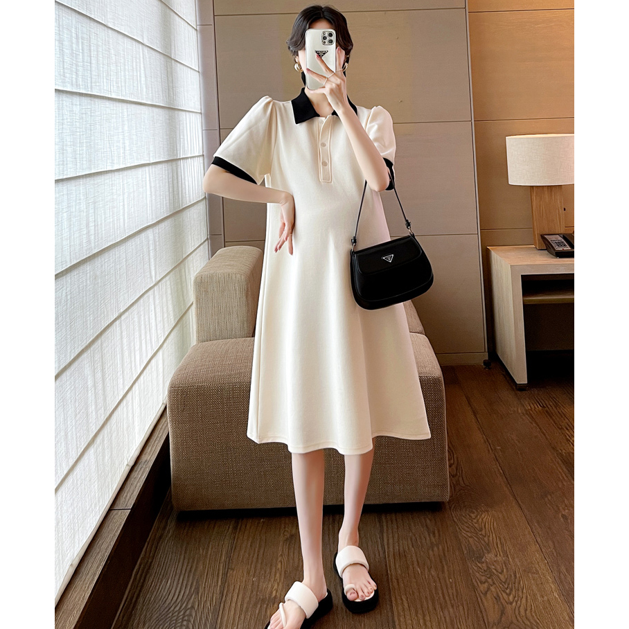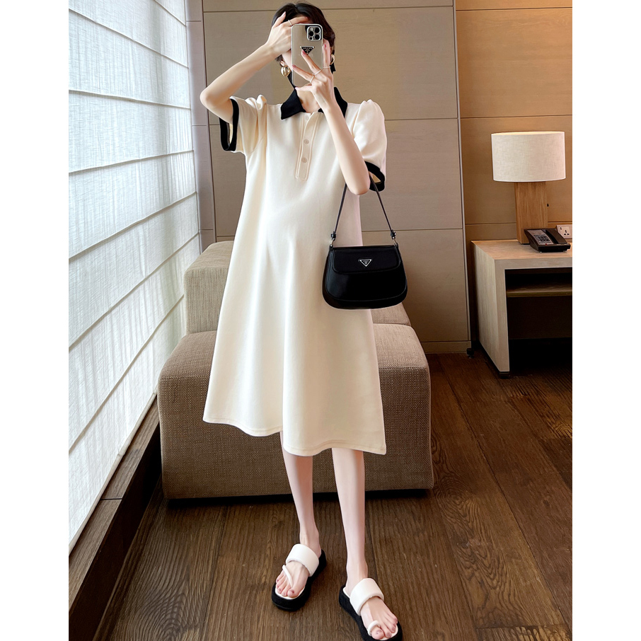 孕妇连衣裙短袖薄款杏色Polo领中长款宽松显瘦遮肚2025新款