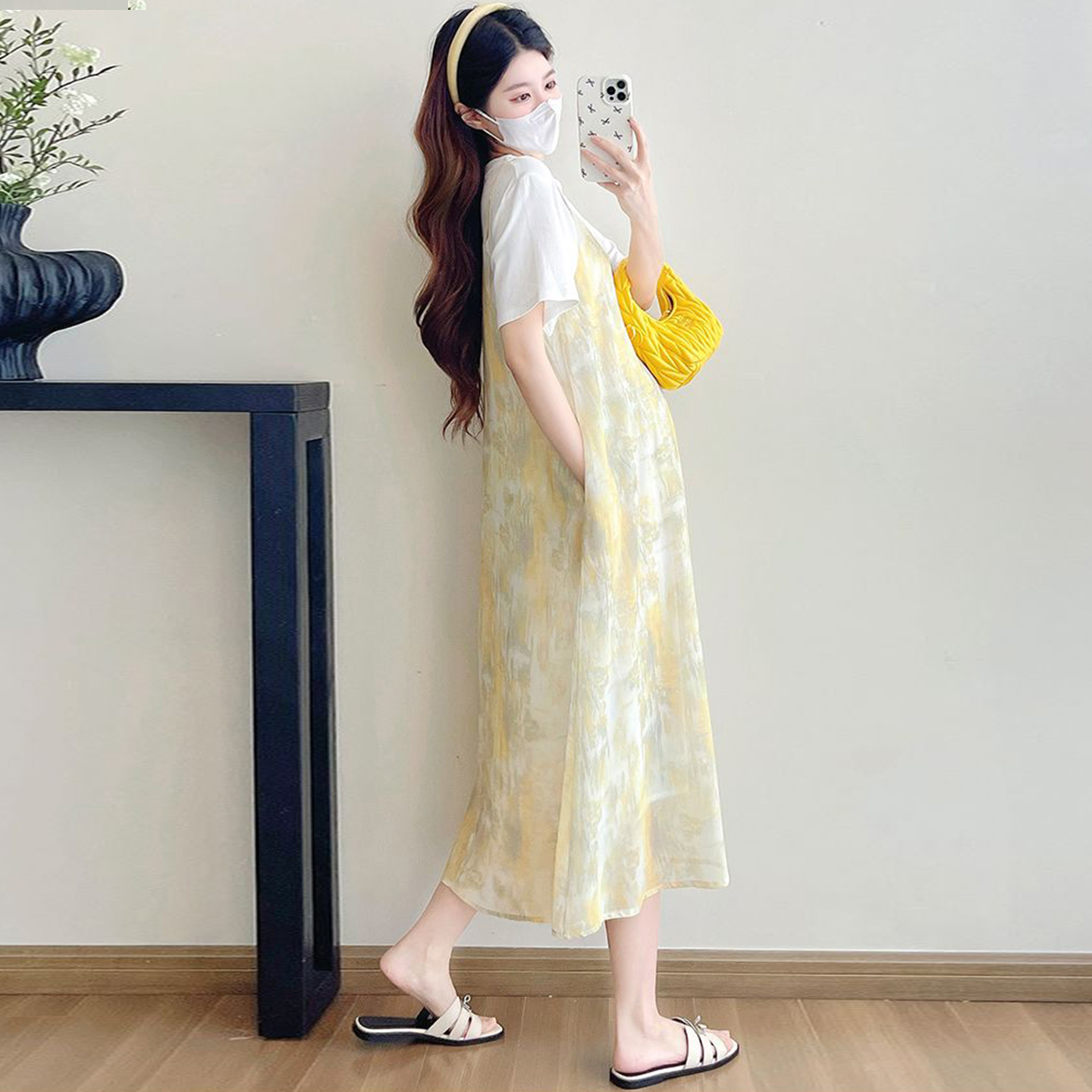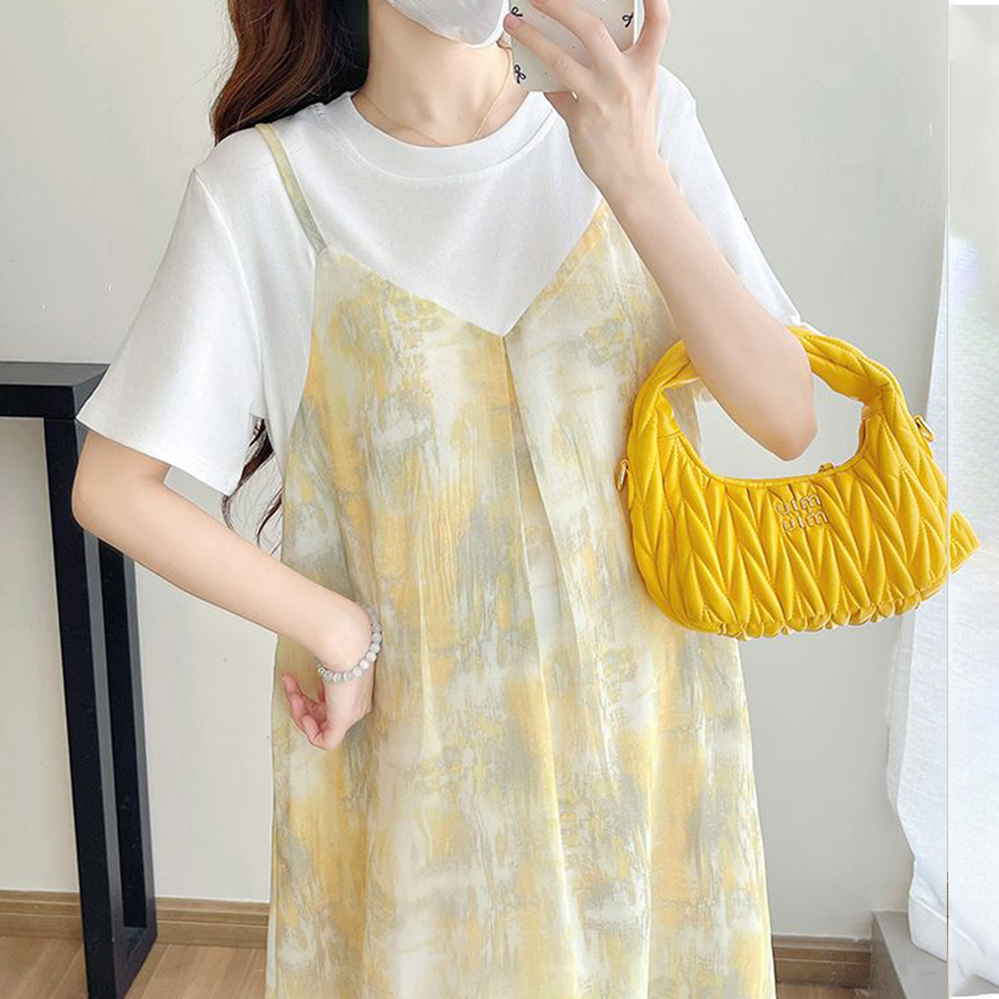 孕妇装夏连衣裙2025新款假两件显瘦温柔宽松孕妈高级穿搭夏季裙子
