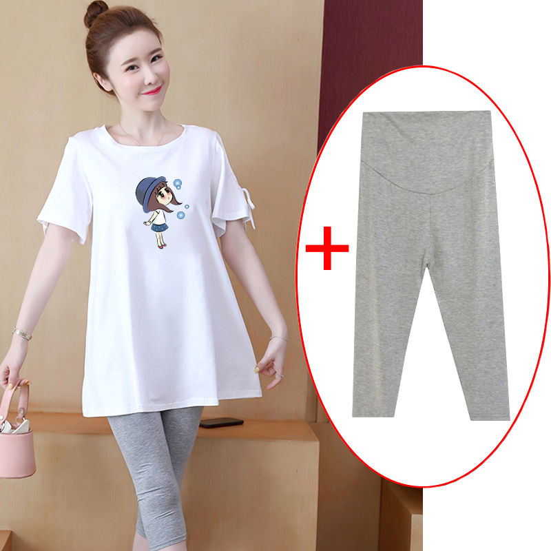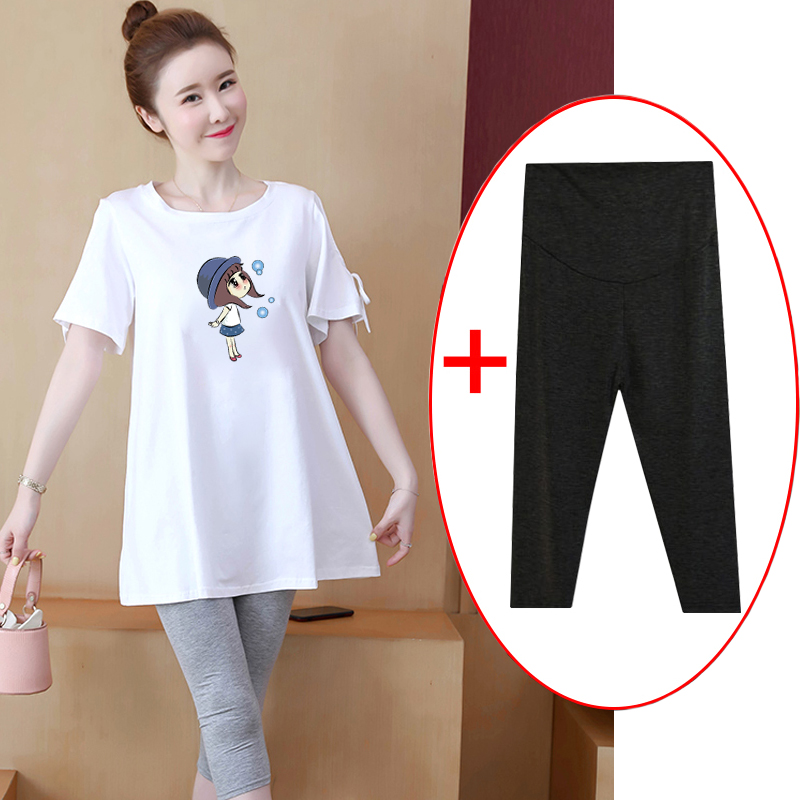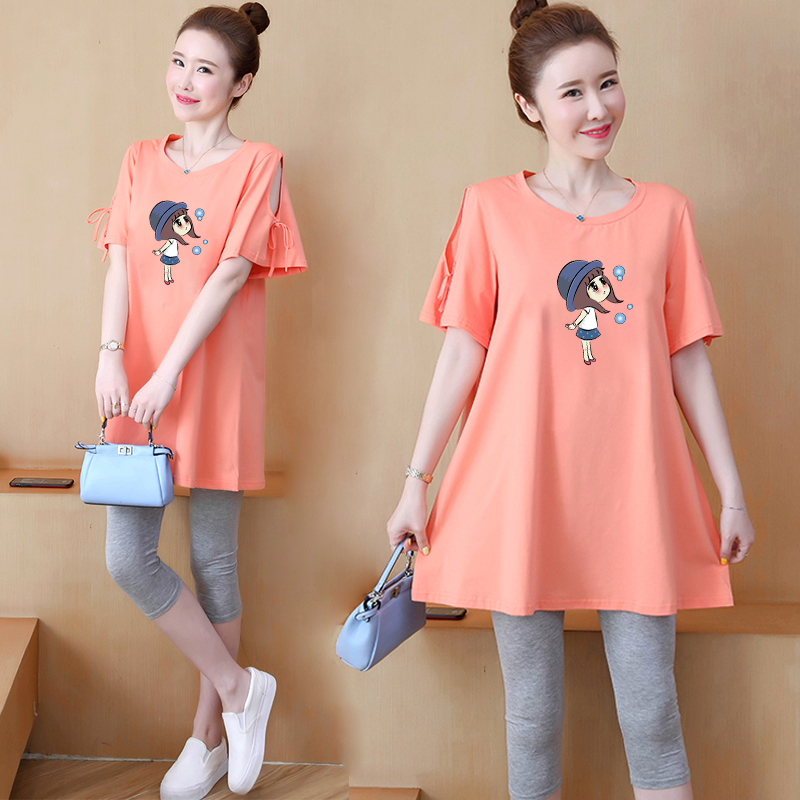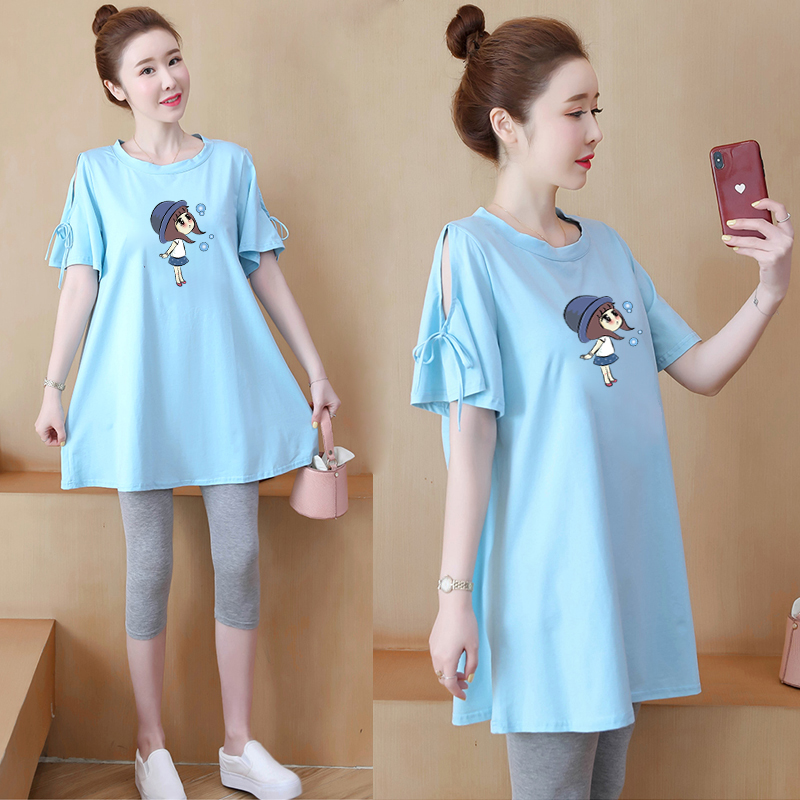 孕妇套装夏装大码宽松外穿潮妈短袖t恤中长款百搭遮肚两件套a字裙