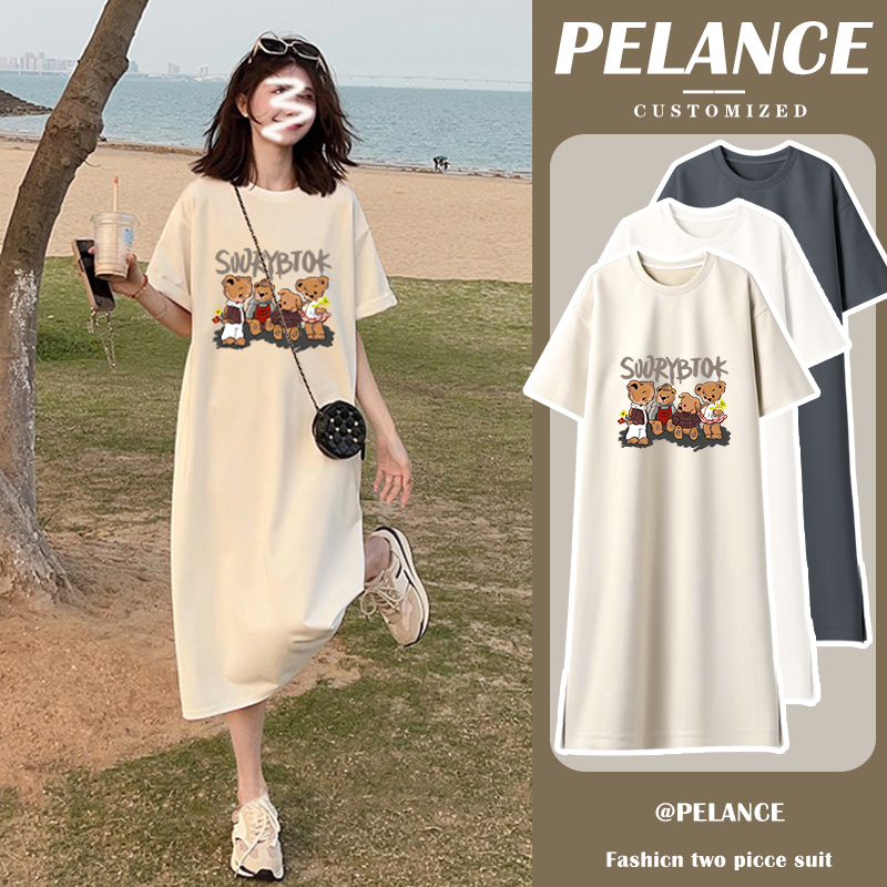 孕妇夏装连衣裙孕妈妈2025新款时尚短袖宽松长款过膝孕妇裙子夏季