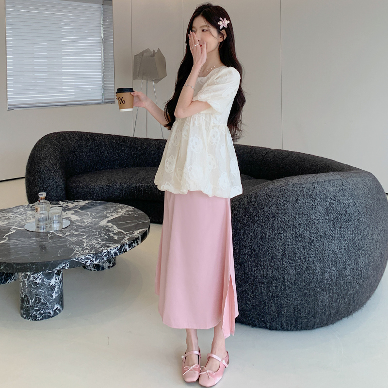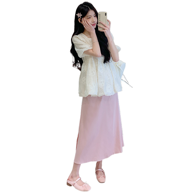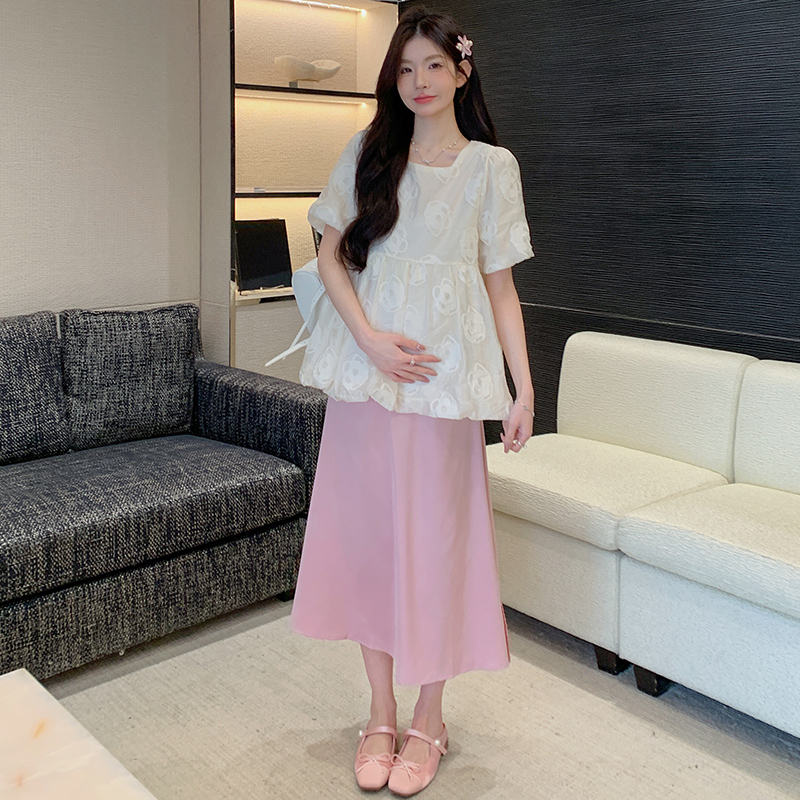 孕妇装上衣套装夏季新款短袖女孕妈高级穿搭雪纺衬衫半身裙两件套