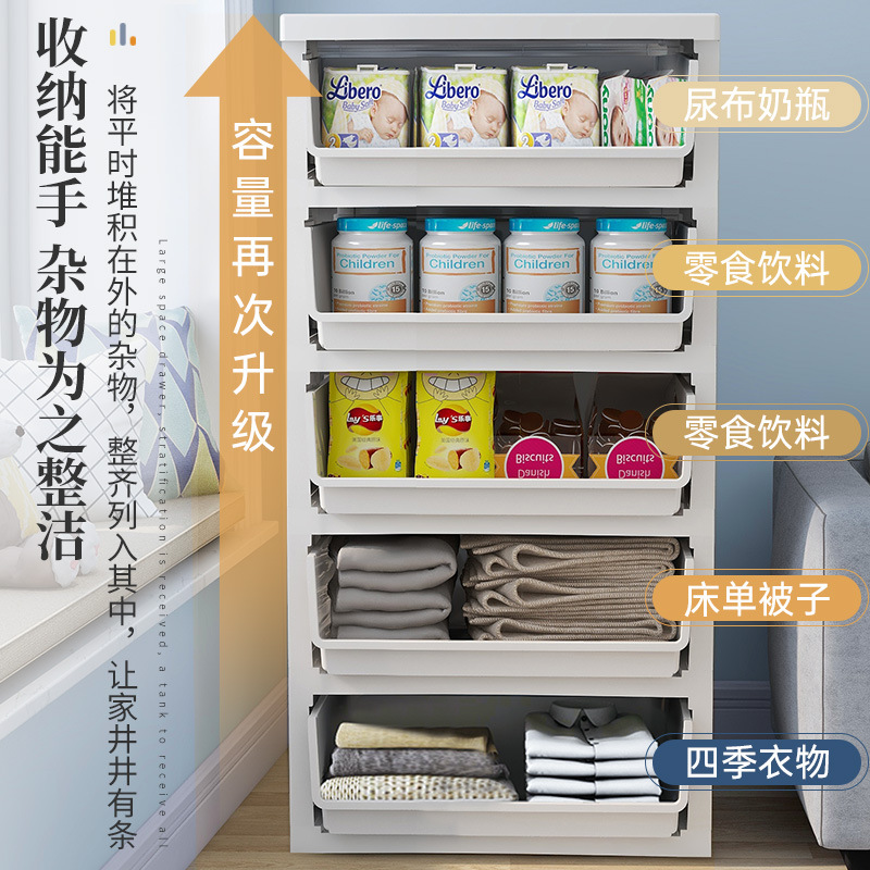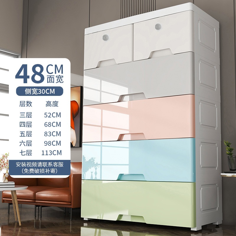 35/48宽塑料抽屉式收纳柜零食柜家用内衣盒五斗柜桌下储物整理箱