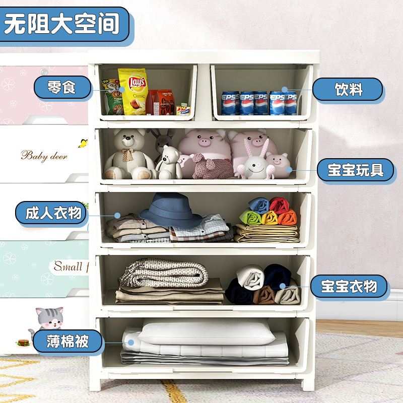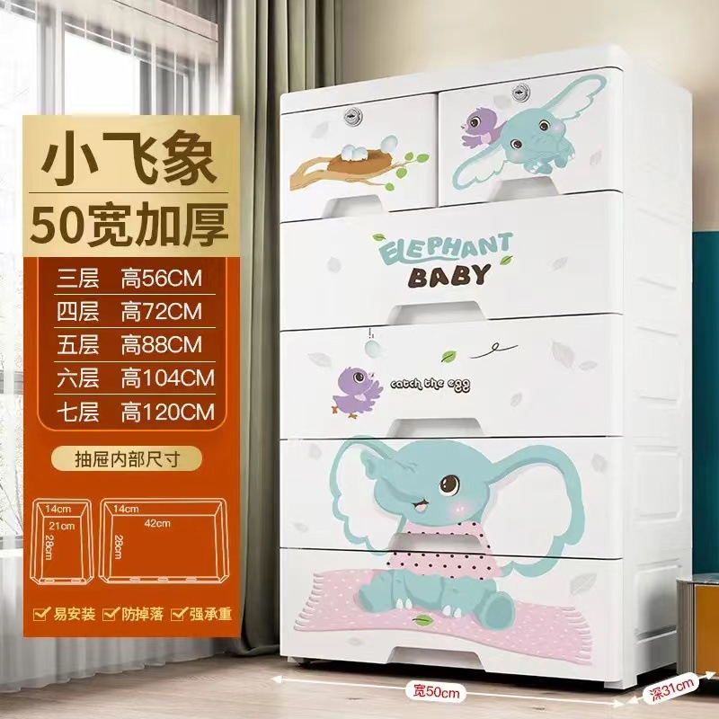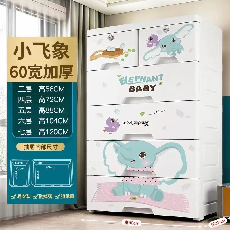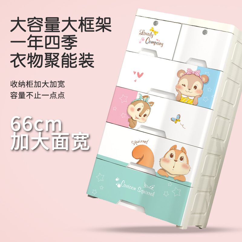 大号卡通抽屉式塑料收纳柜家用杂物衣服玩具零食储物柜整理衣柜