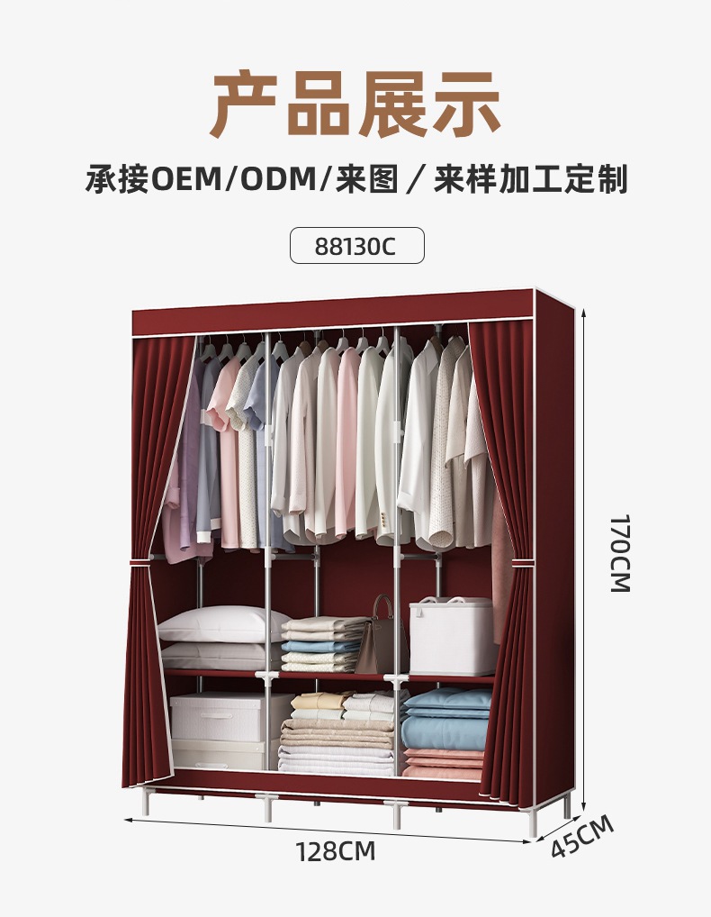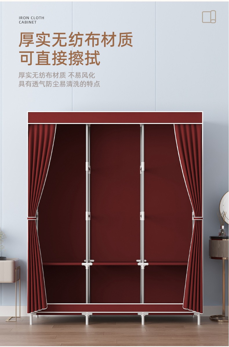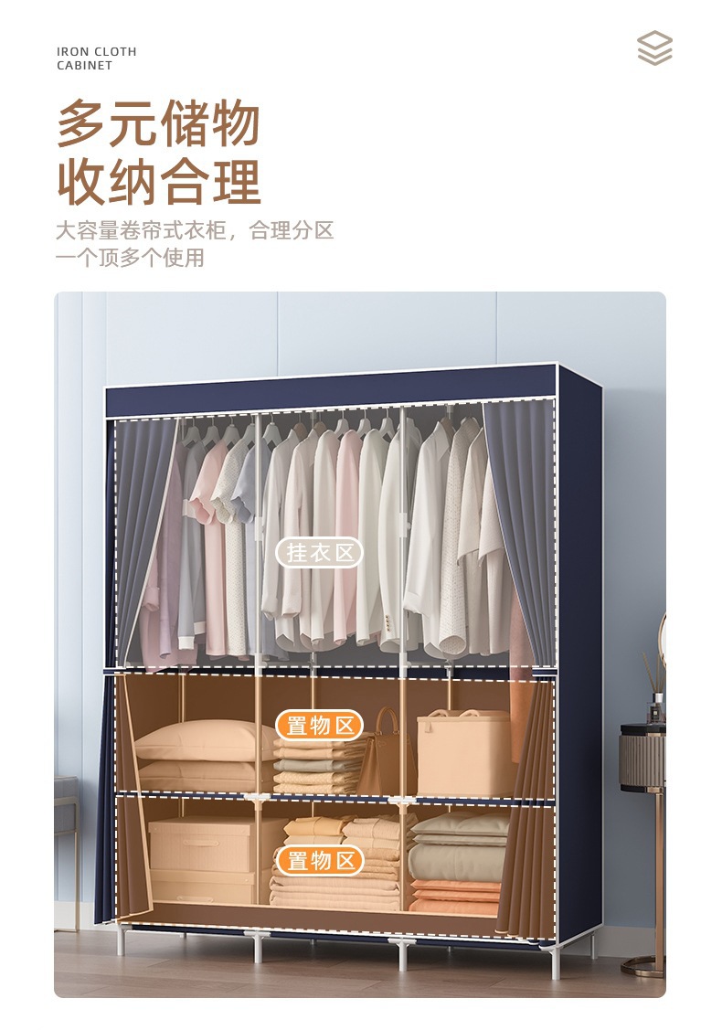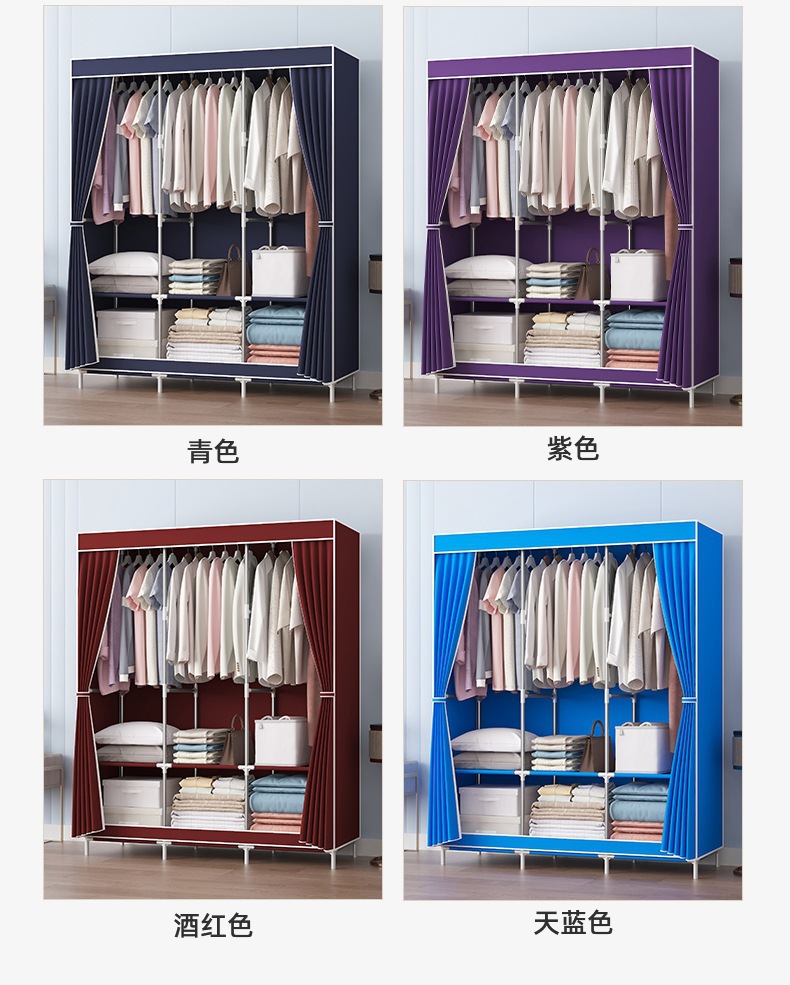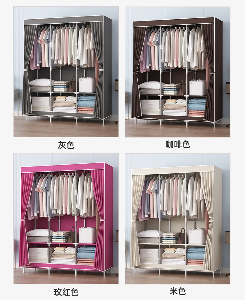 简易衣柜加粗加固钢管无纺布衣柜简约经济型组装收纳衣橱柜子