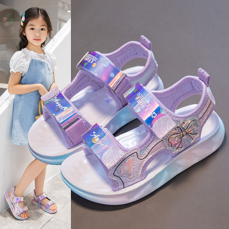 2025春夏季女童凉鞋轻便鞋底露趾沙滩鞋蝴蝶结镂空凉鞋小童中童鞋
