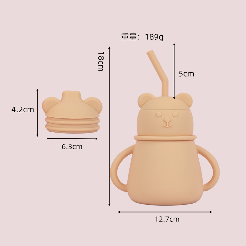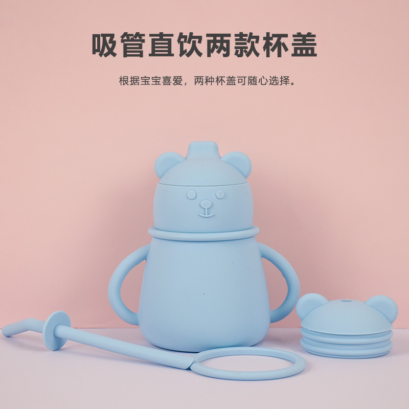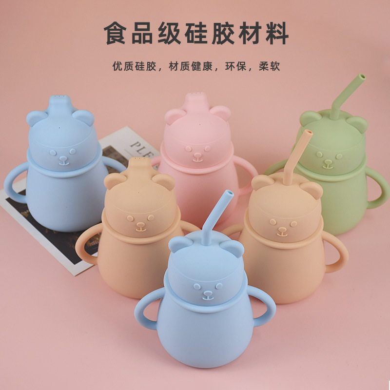 亚马逊爆款硅胶吸管杯防呛防漏硅胶鸭嘴杯耐摔耐高温硅胶儿童水杯