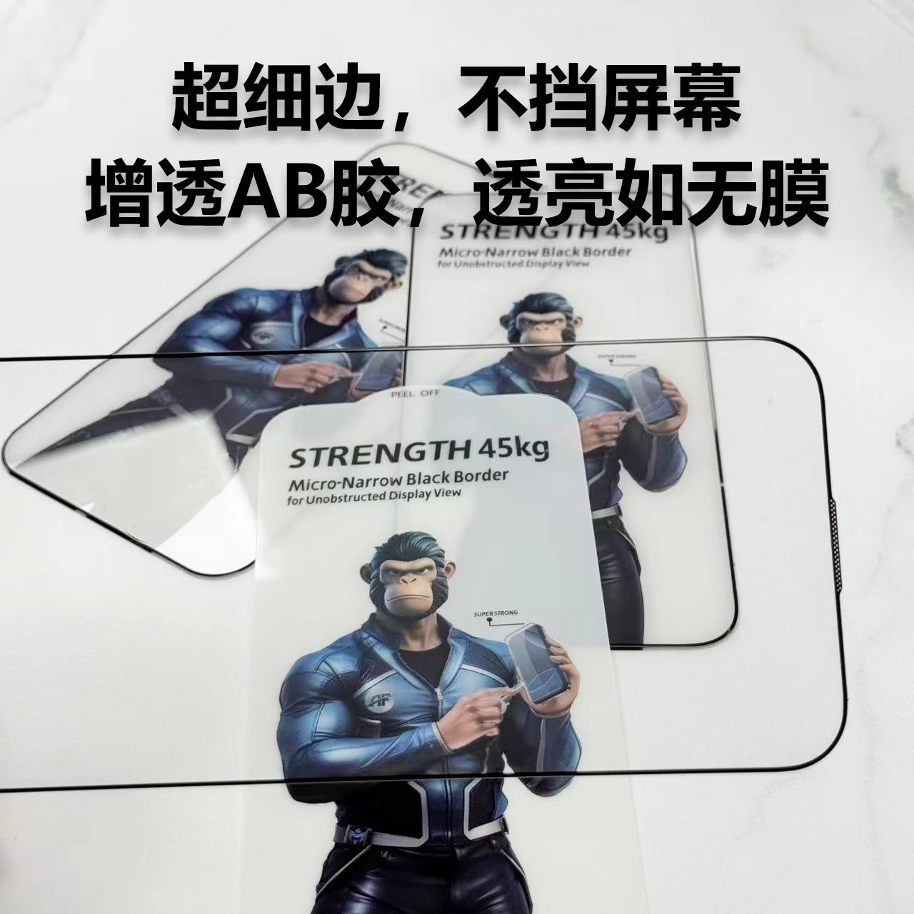 猩猩抗压边系列适用苹果16/15/14/Pro/Max全屏高铝防窥高清钢化膜