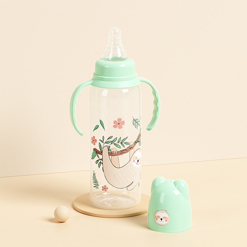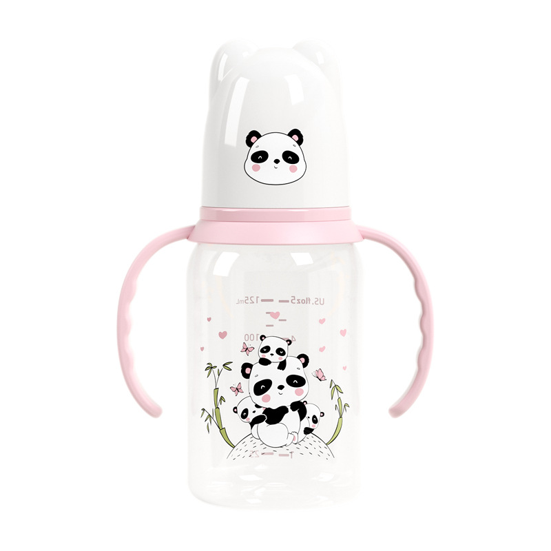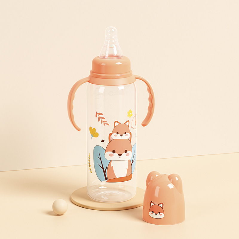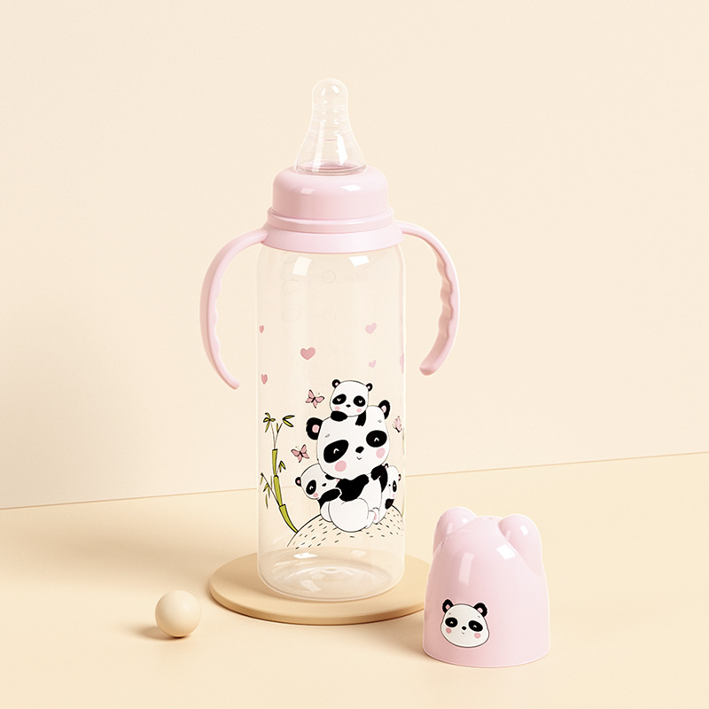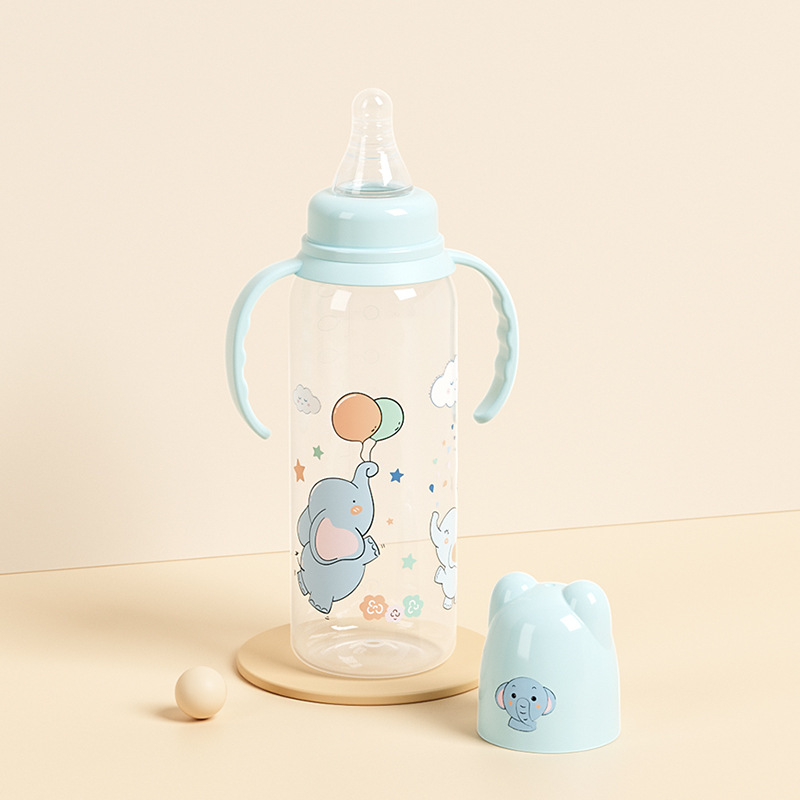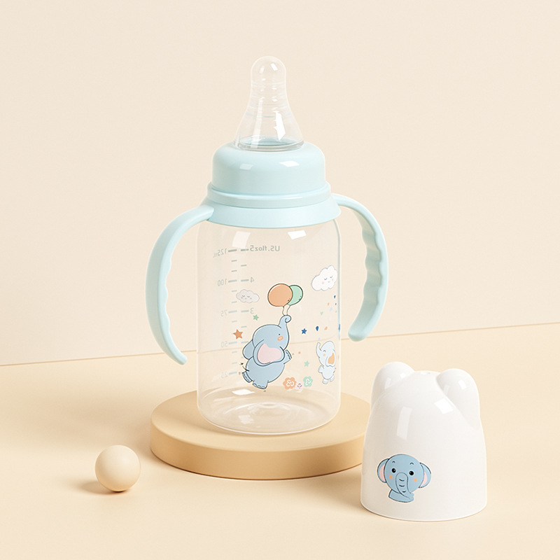 外贸塑料直身奶瓶新生婴儿可爱带手柄防胀气标口125/250ml奶瓶