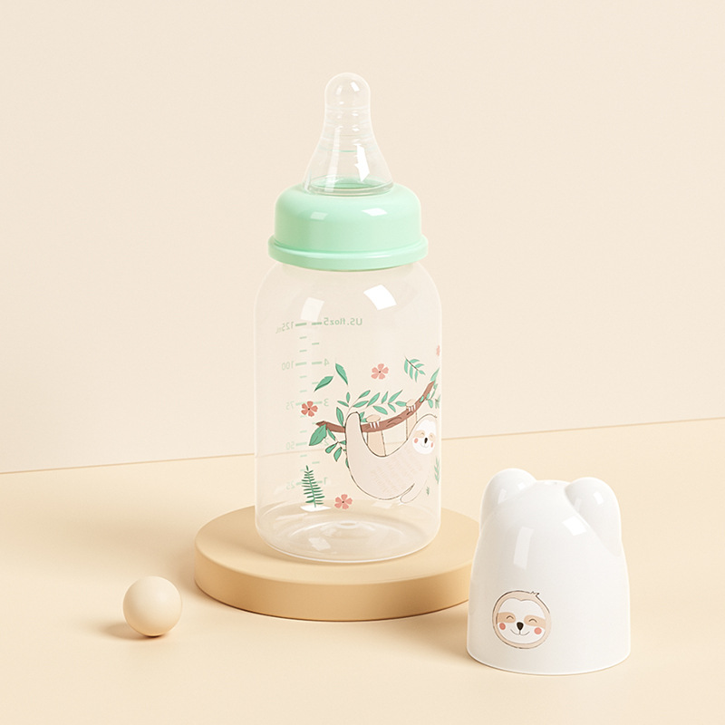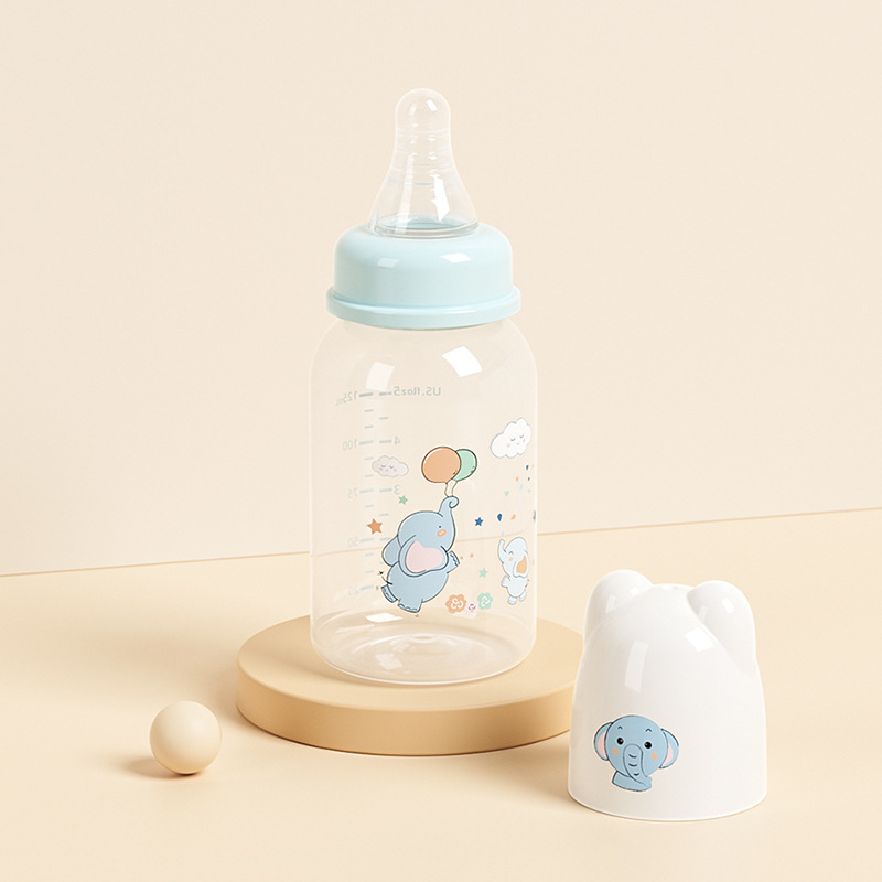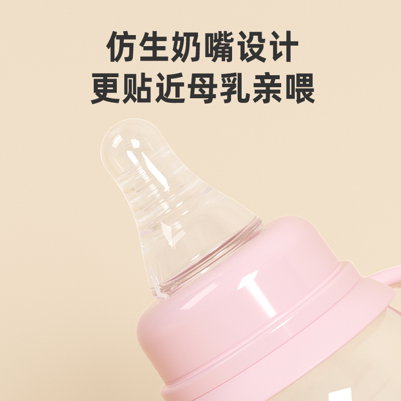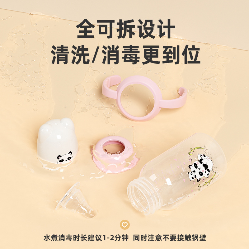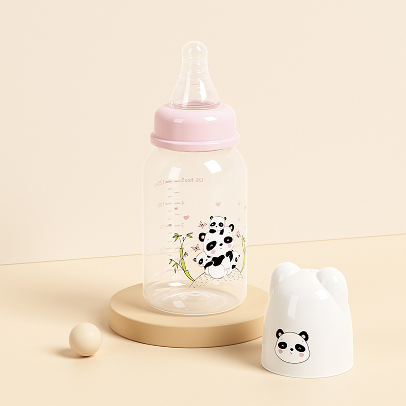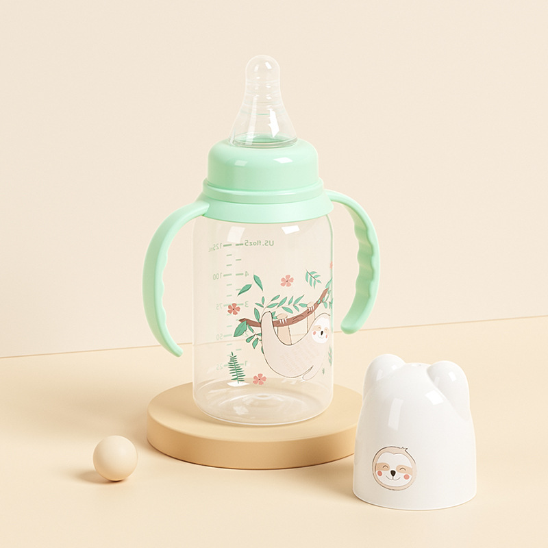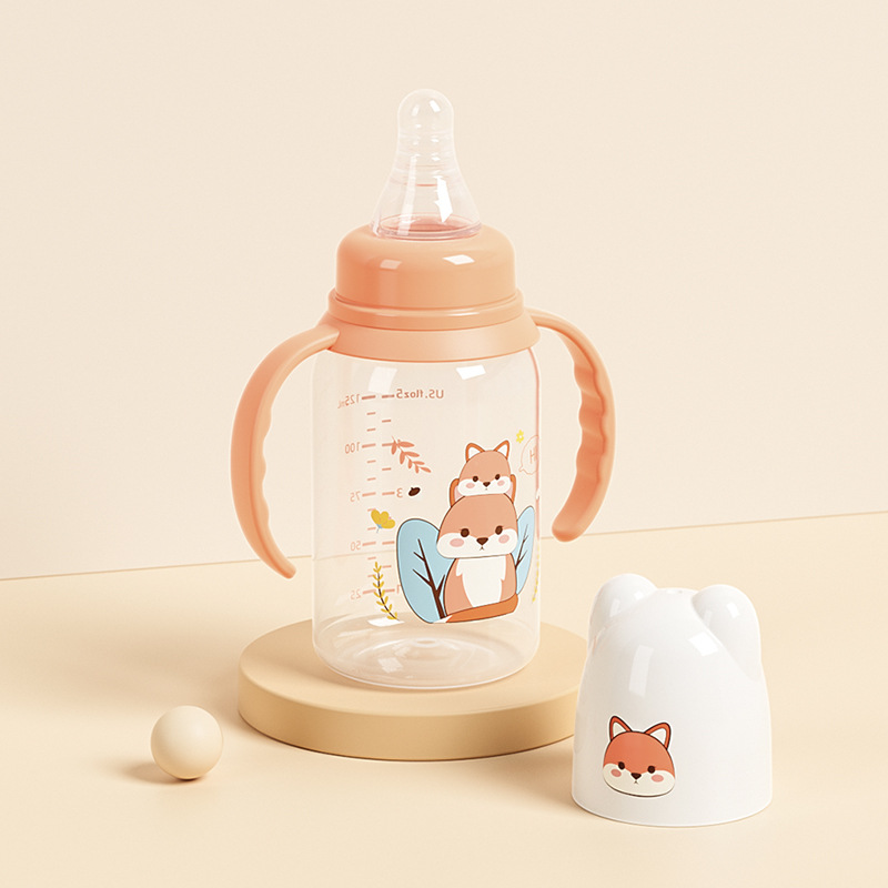 外贸塑料直身奶瓶新生婴儿可爱带手柄防胀气标口125/250ml奶瓶