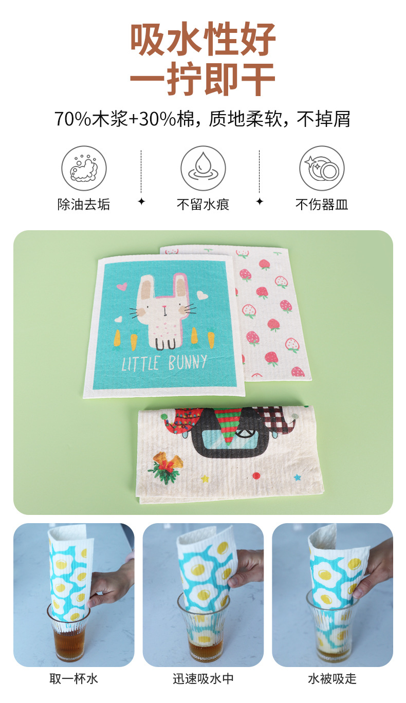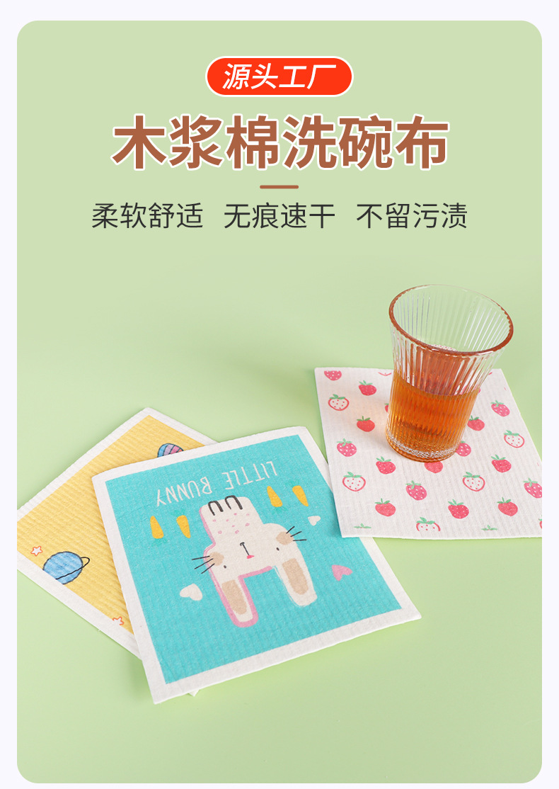 德国木浆棉抹布干湿两用木浆海绵百洁布厨房清洁卡通印花洗碗布