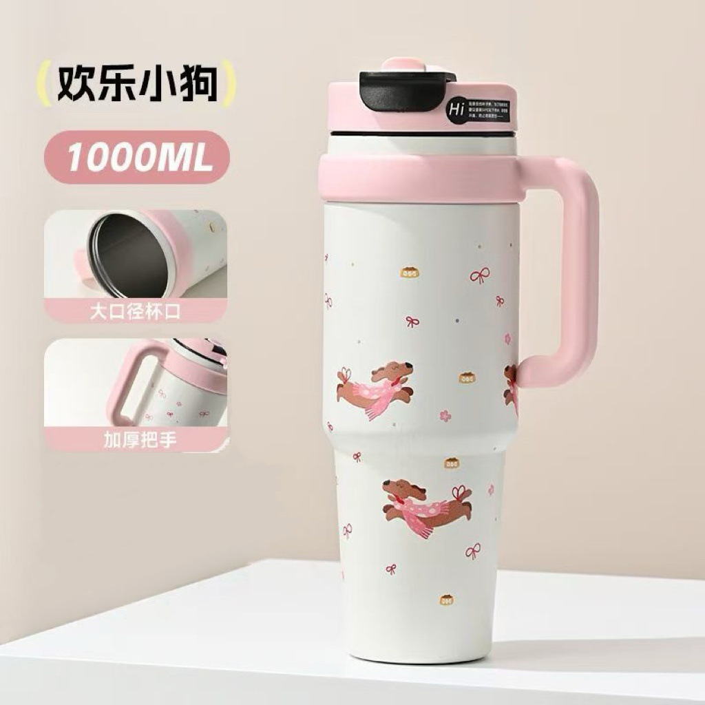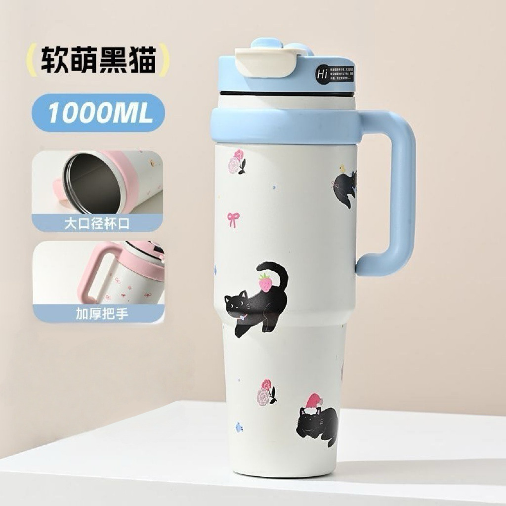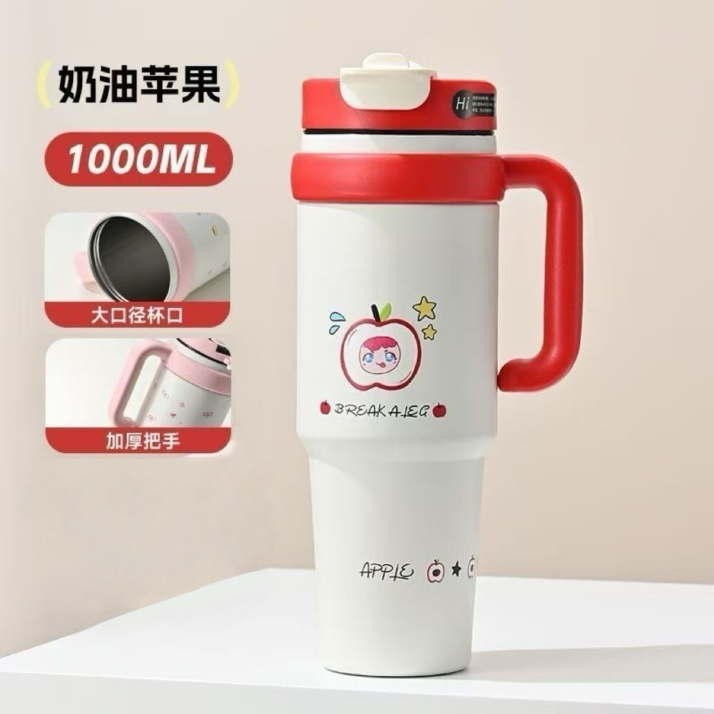 巨无霸保温杯女生高颜值大容量冰霸杯可爱图案水杯新款吸管杯