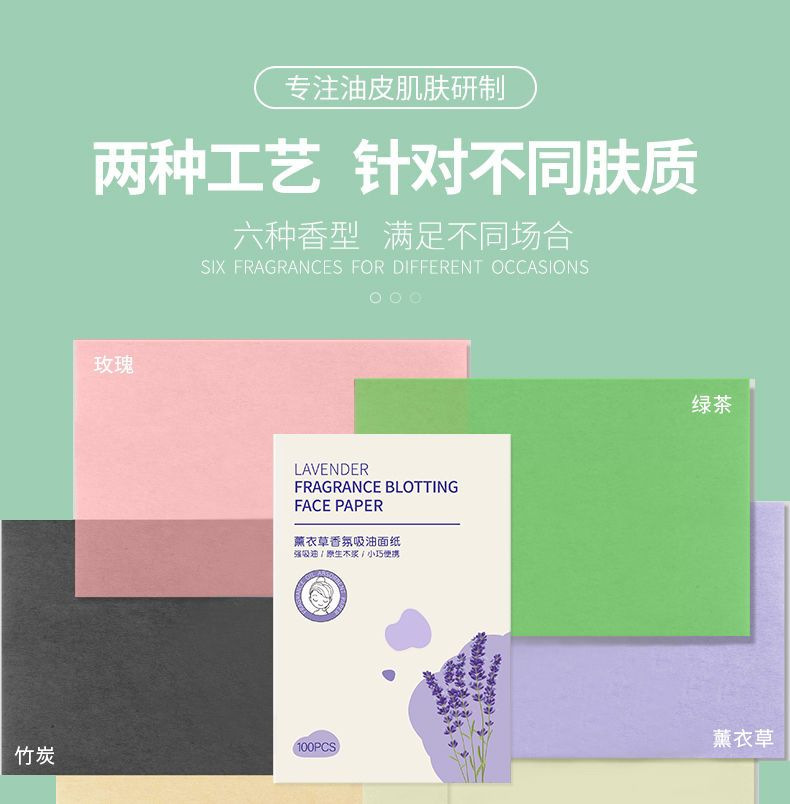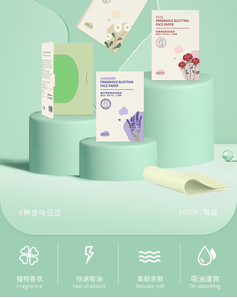 面部吸油纸100片亚麻木浆颗粒绒面香氛吸油纸便携抽取式彩妆工具