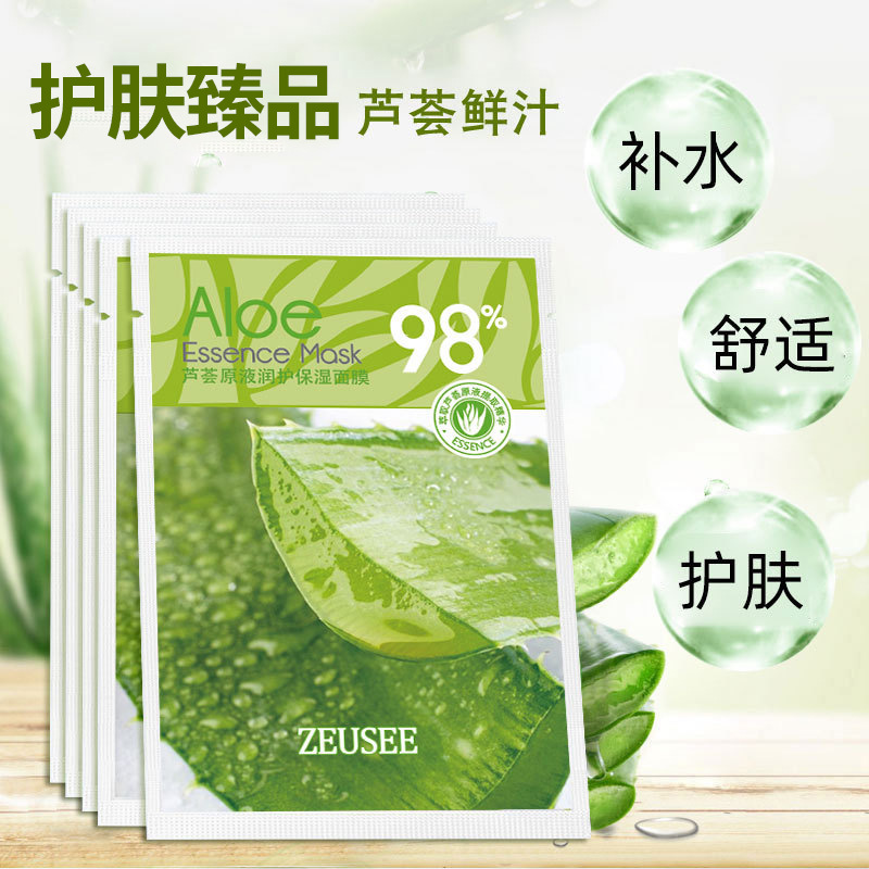 芦荟原液面膜补水保湿蚕丝面部护理滋润护肤品5片盒装