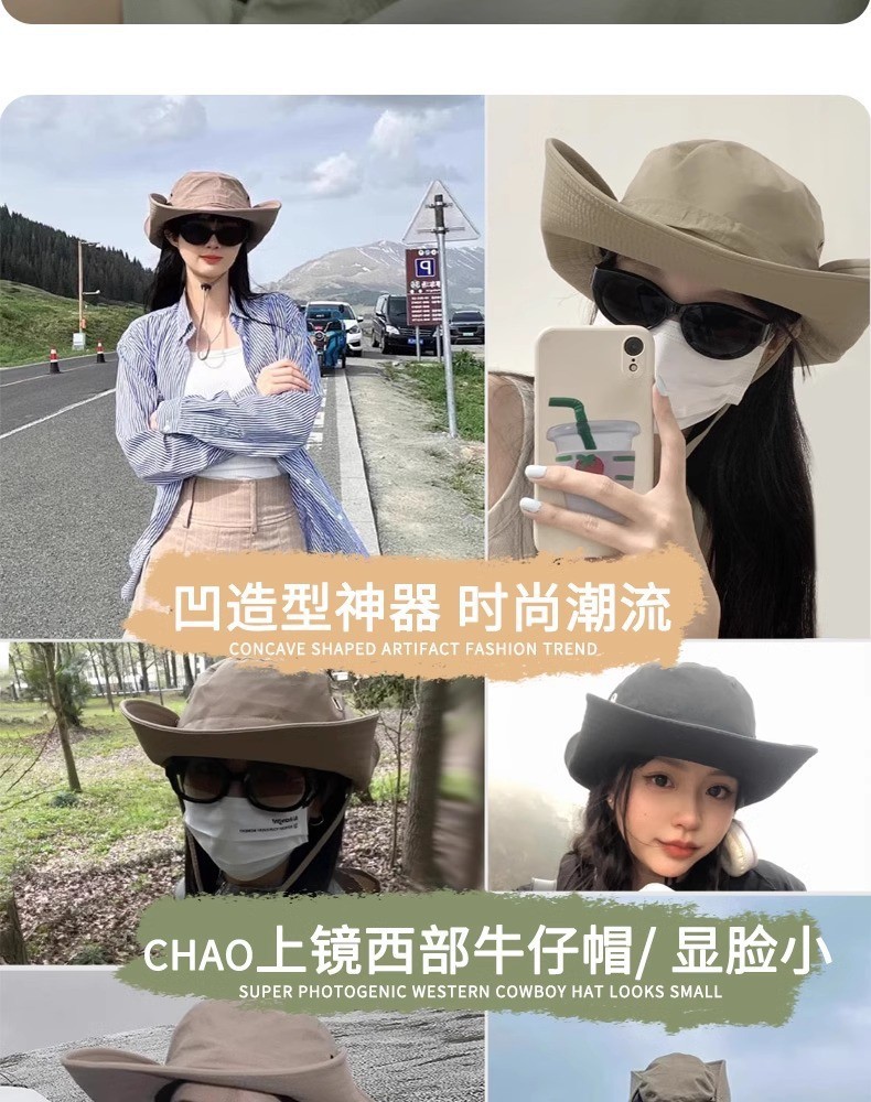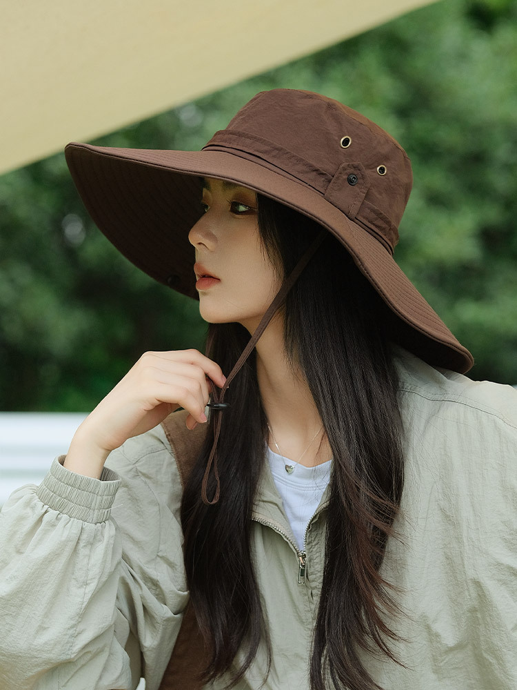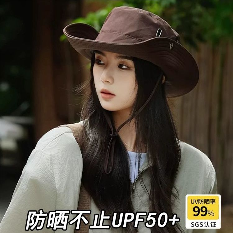 登山帽露营帽2025春夏防水渔夫帽女防晒户外西部牛仔尼龙速干帽子