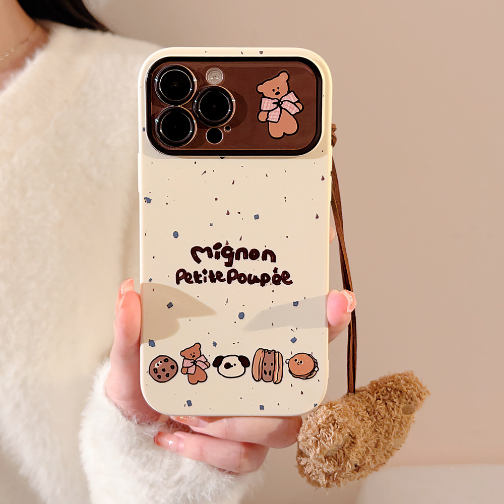 小熊挂绳适用iphone14苹果15手机壳13promax全包11韩16可爱XR软套