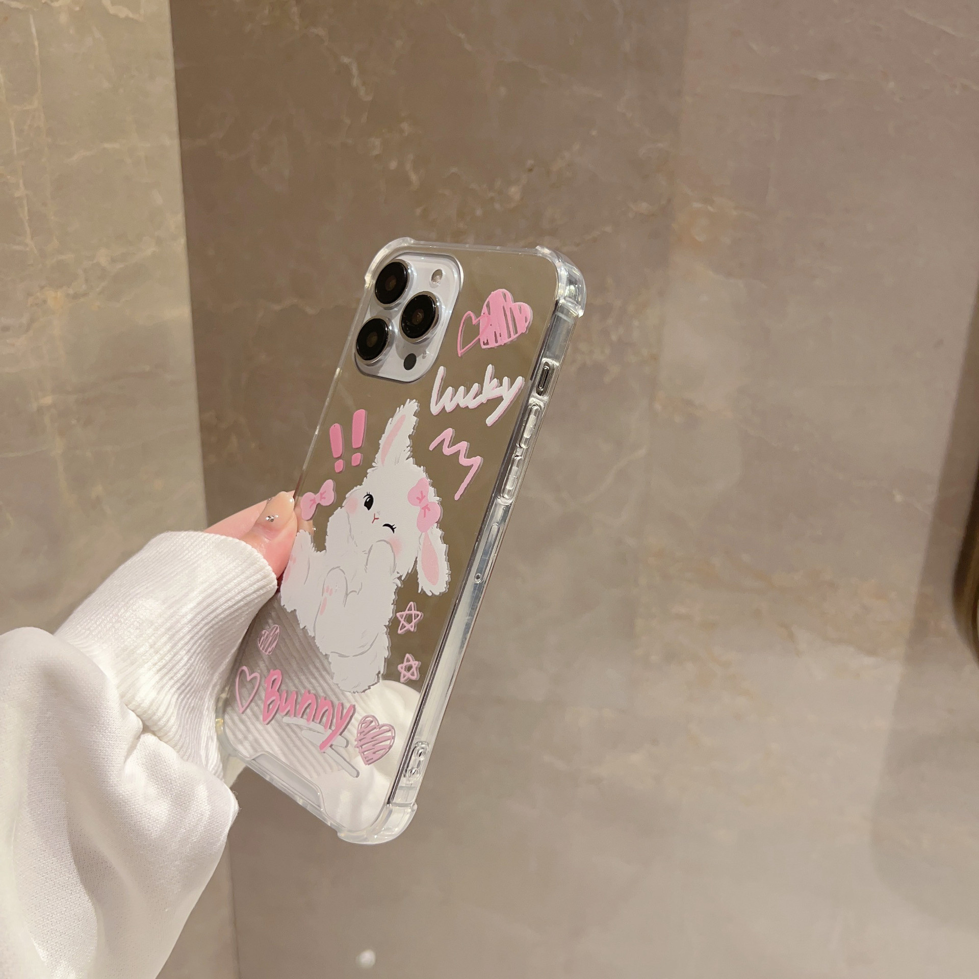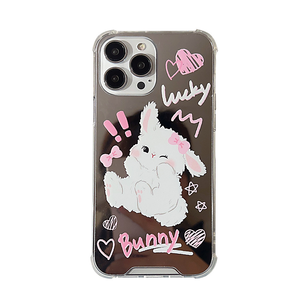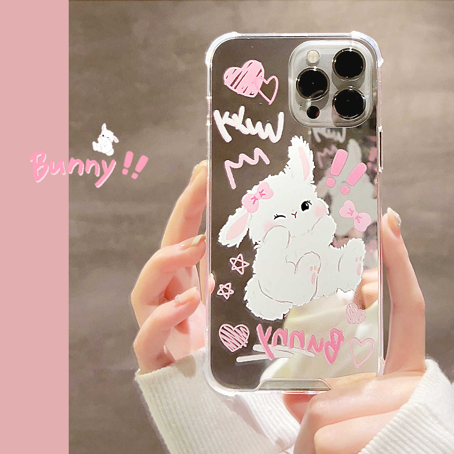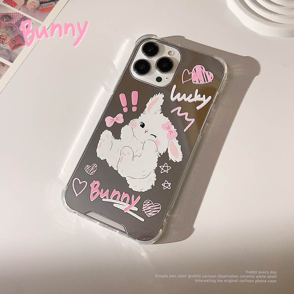 适用苹果16promax手机壳15可爱涂鸦小兔子iphone13镜面11原创14套