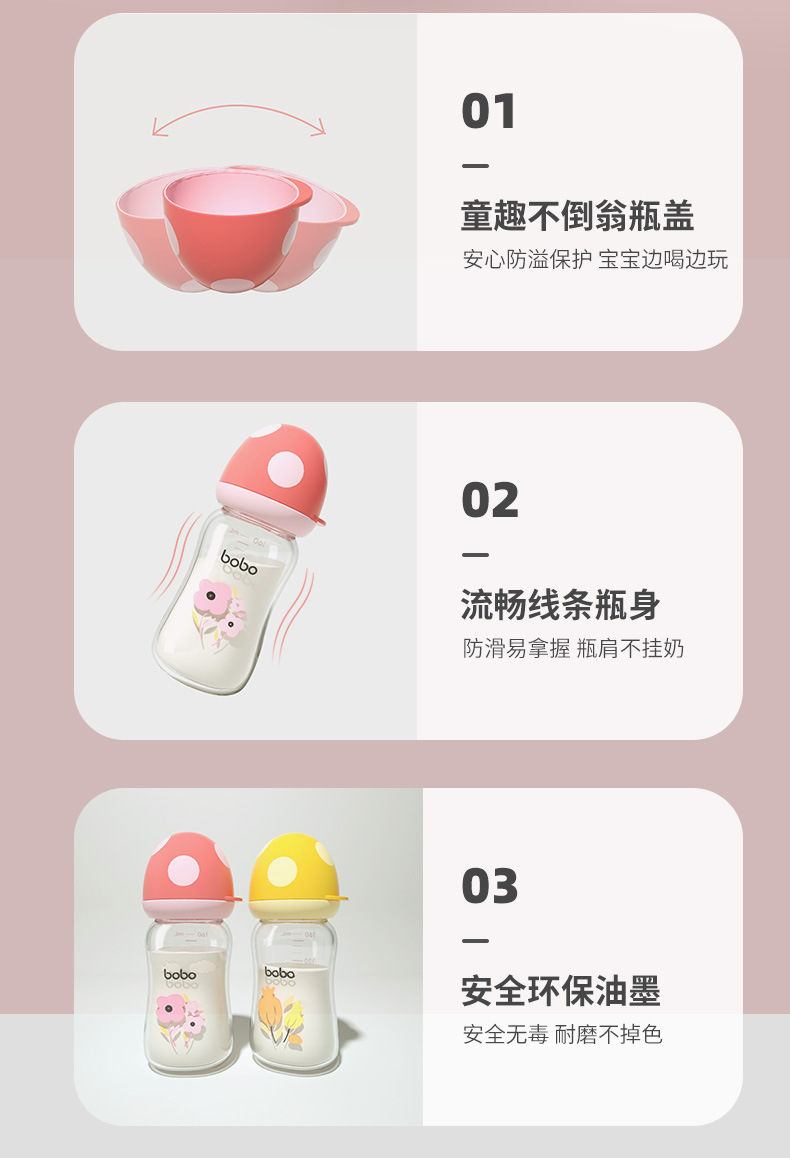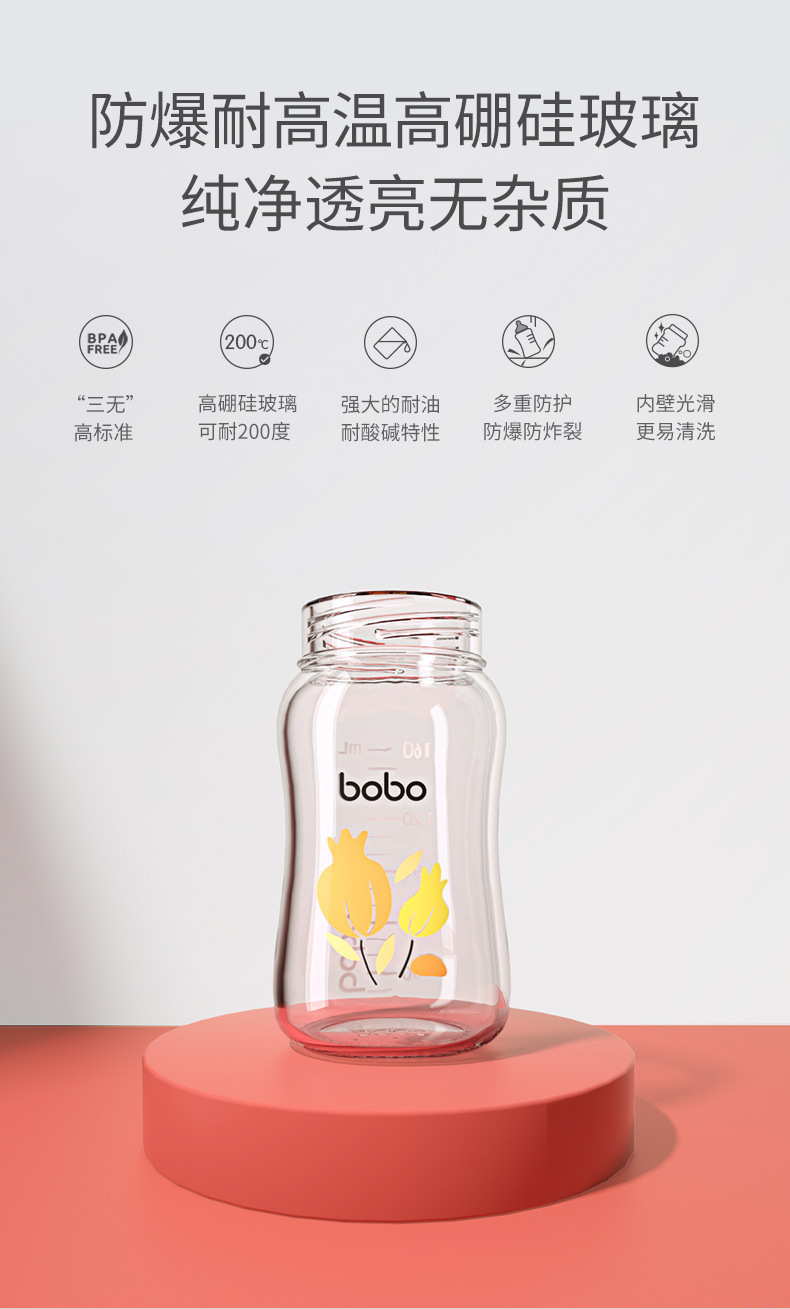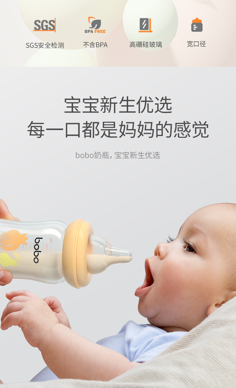 bobo新生儿玻璃奶瓶亲喂防胀气婴幼儿玻璃奶瓶