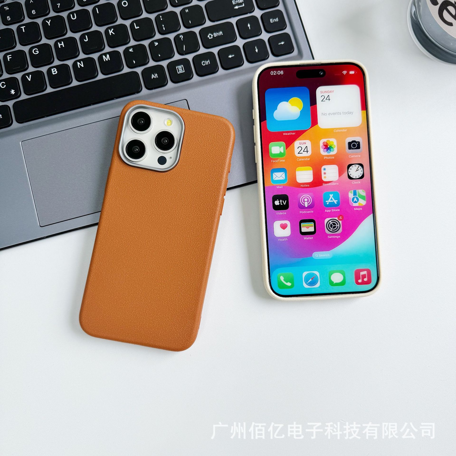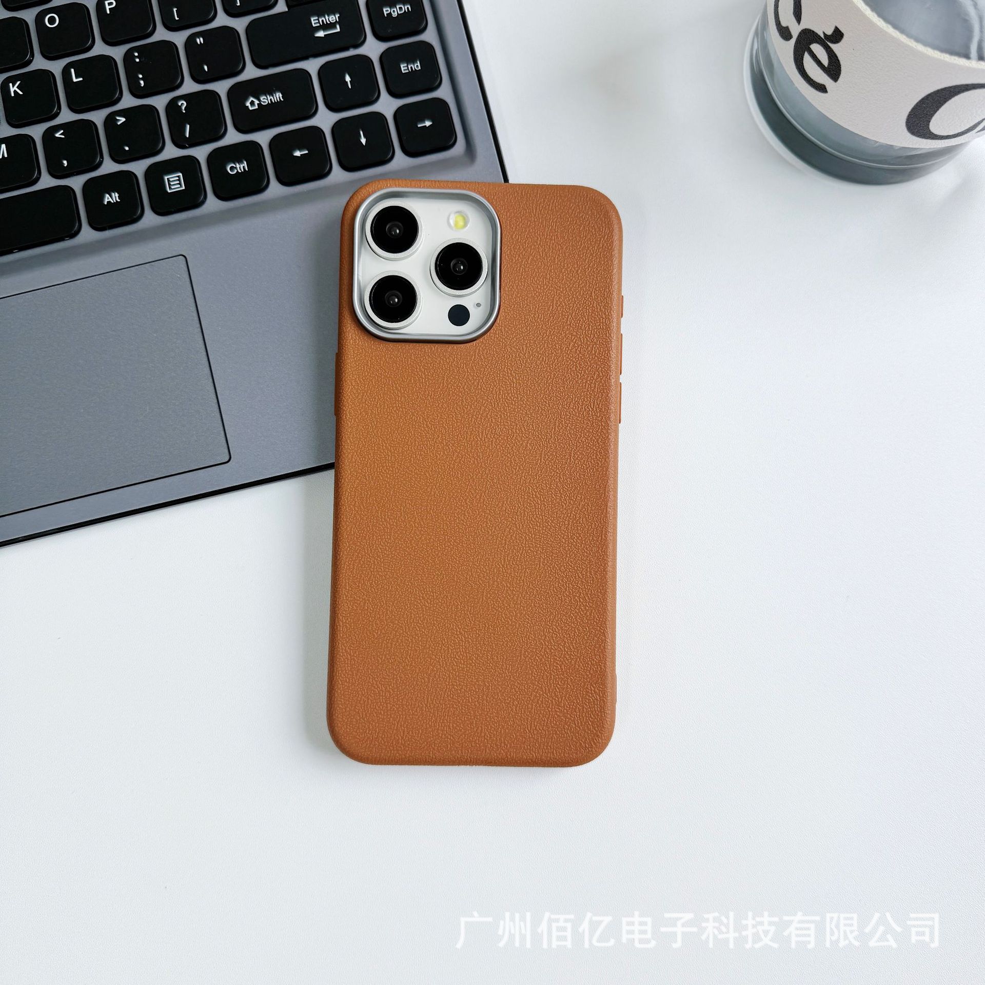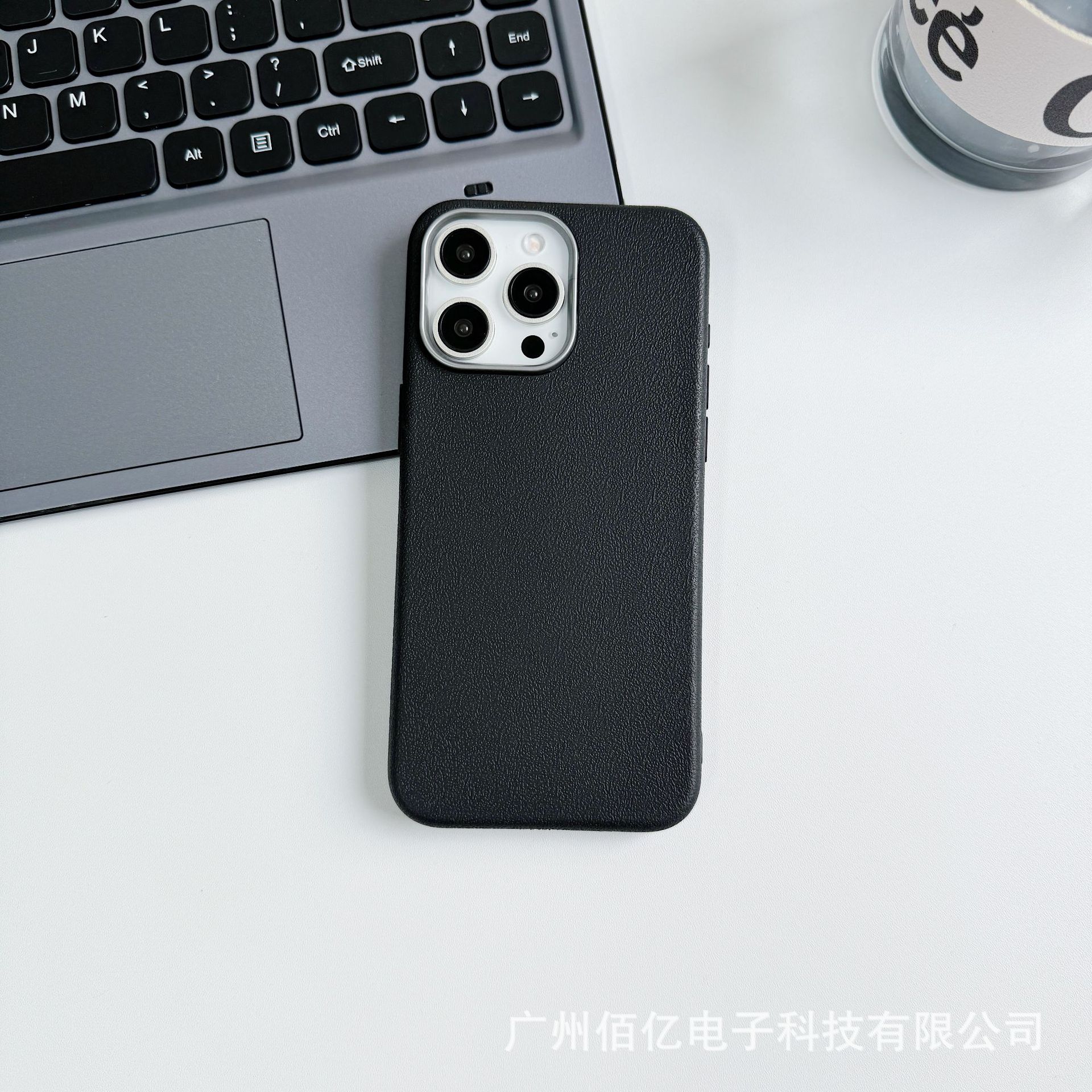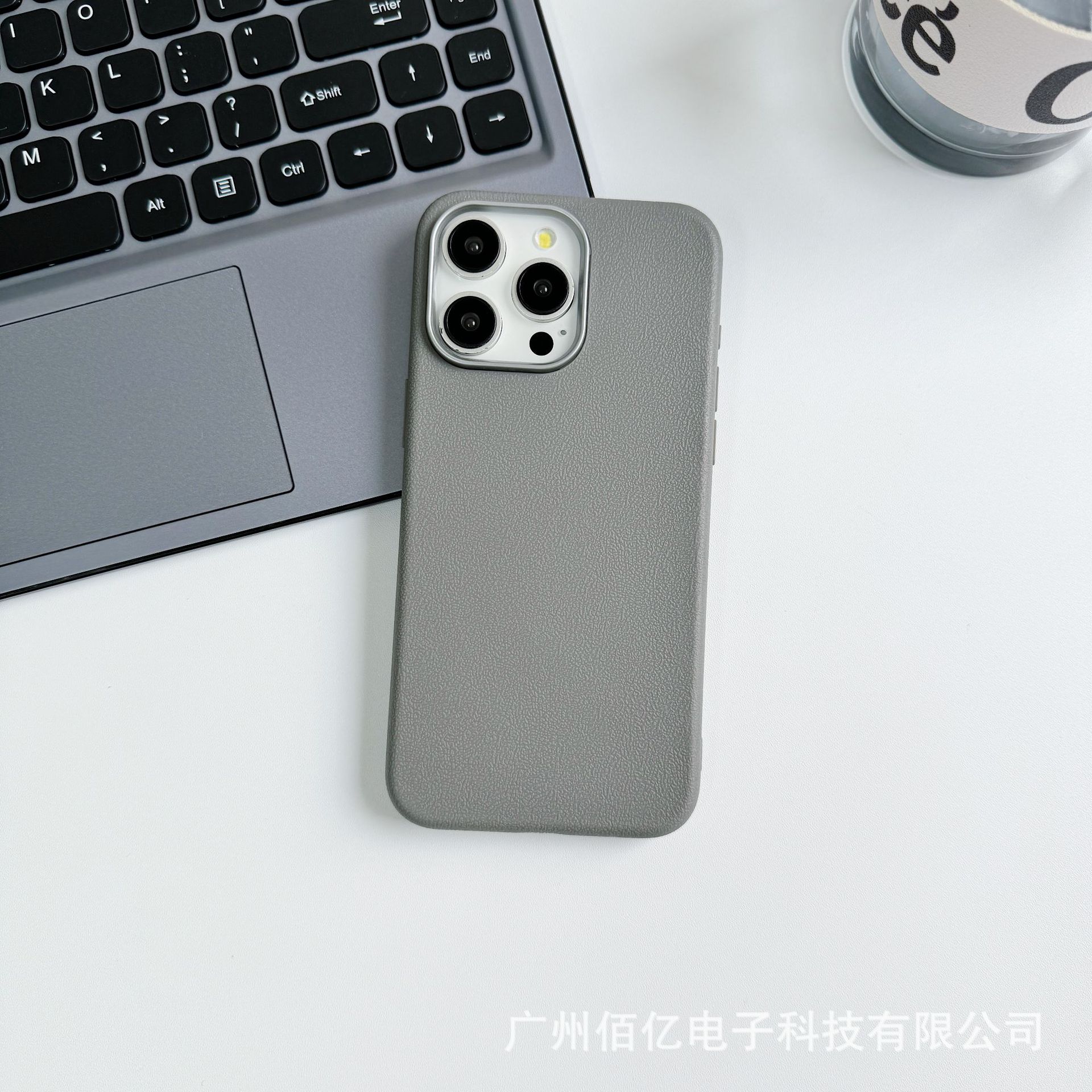适用iPhone15promax素皮手机壳大孔TPU苹果软壳秋冬仿皮纹壳纯色