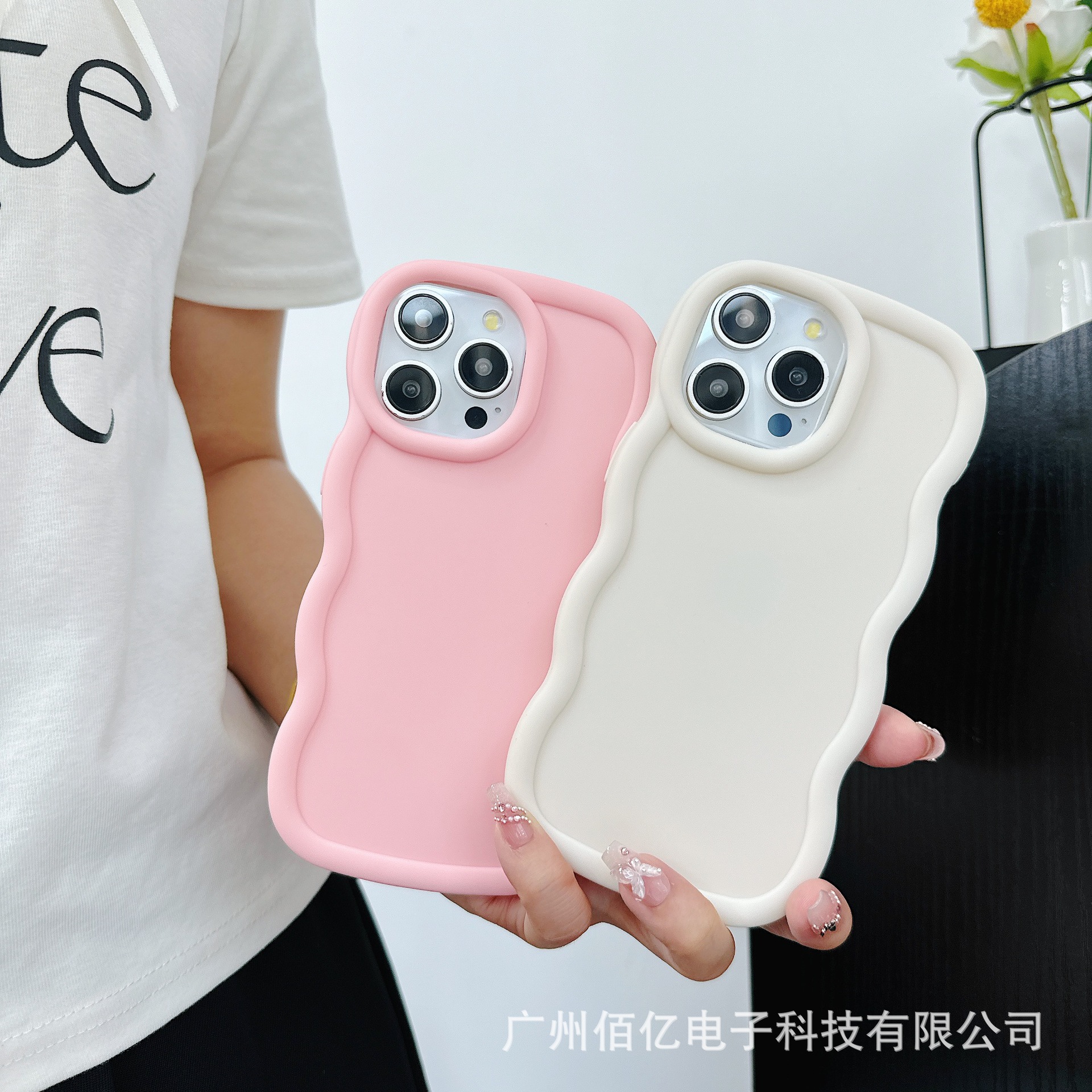 适用苹果手机壳tpu波浪边软壳保护套跨境新款马卡龙苹果15手机壳