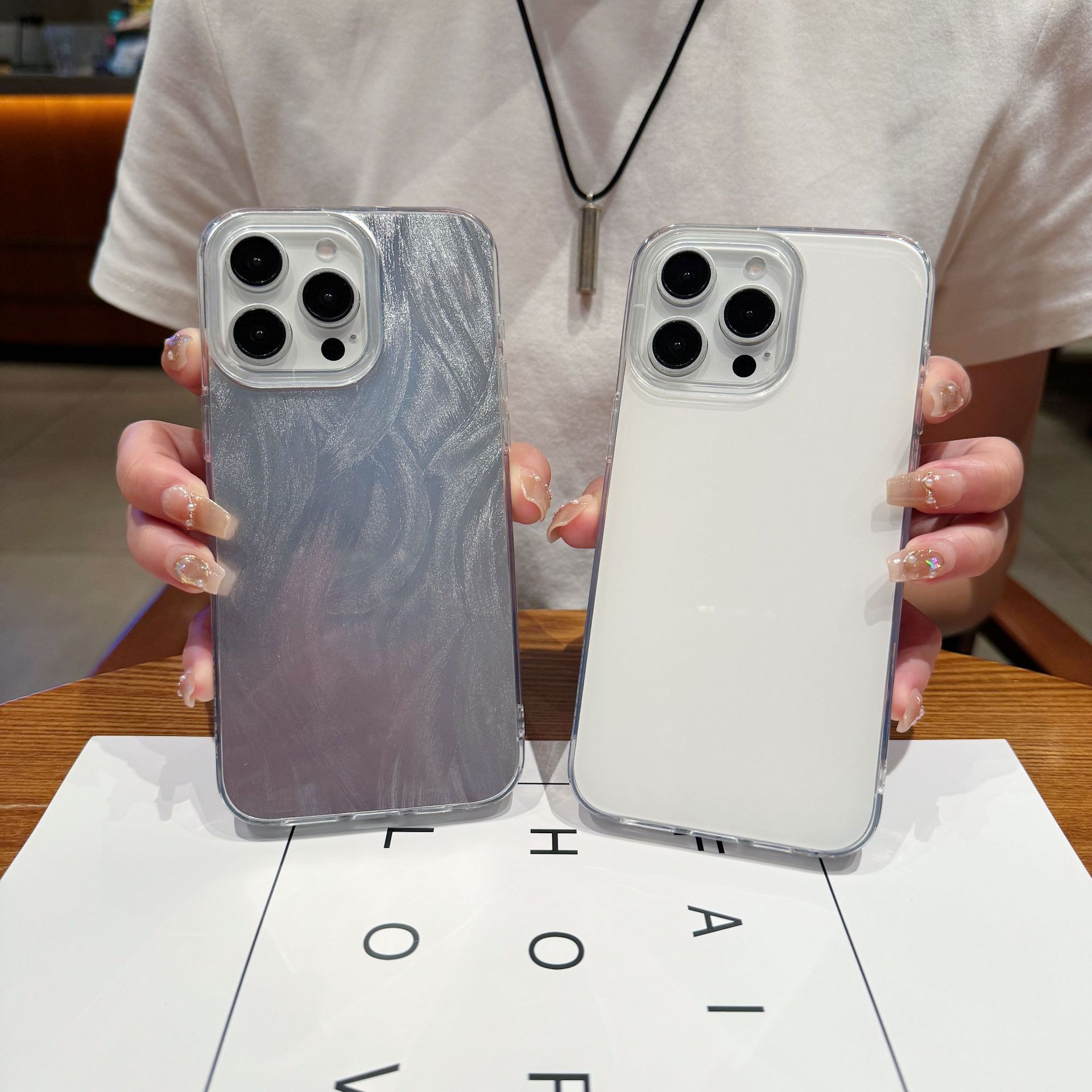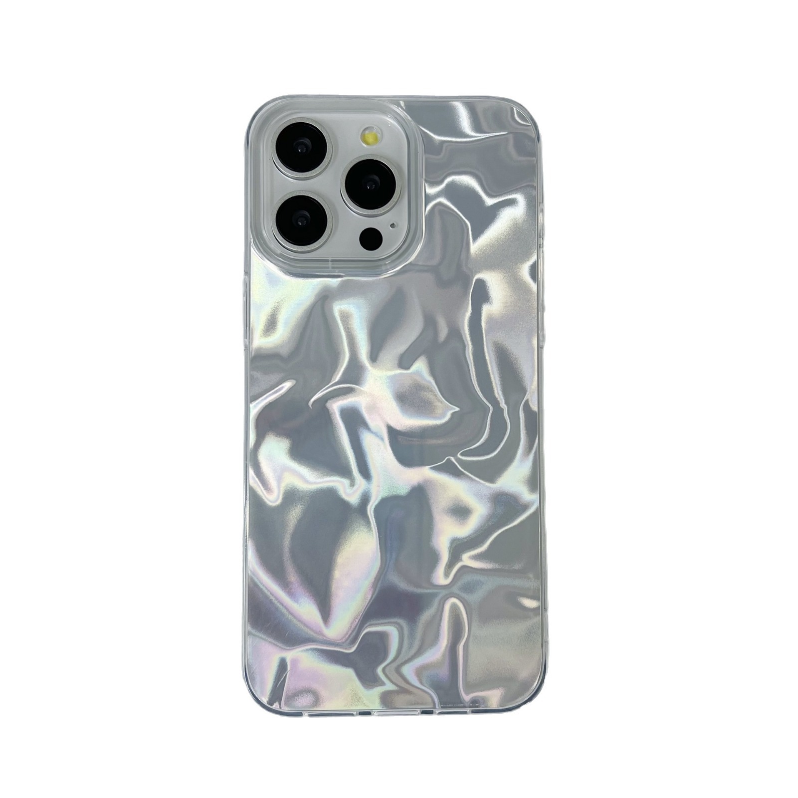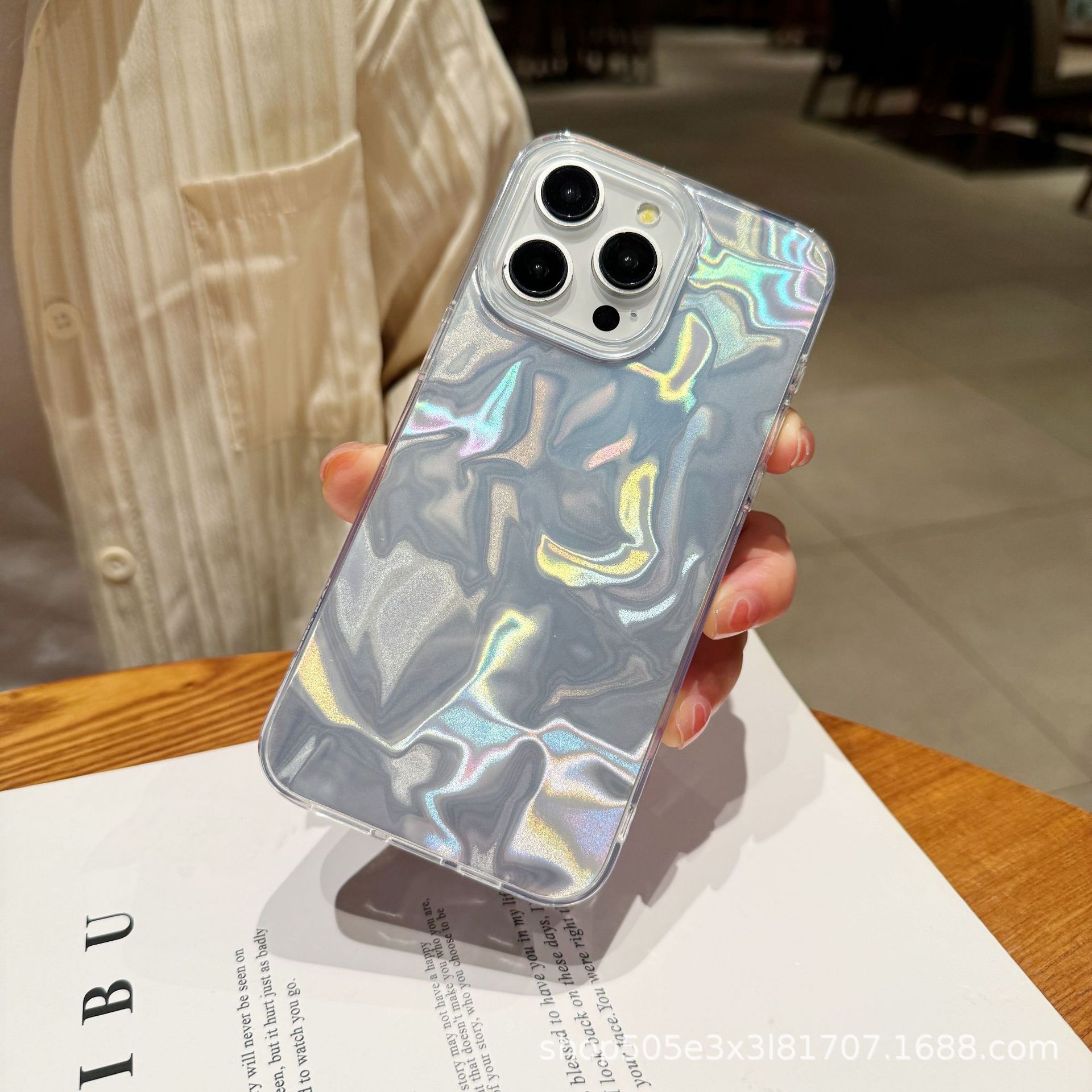 适用苹果15大孔羽纱手机壳iphone14水波纹imd冰川素材彩绘保护套
