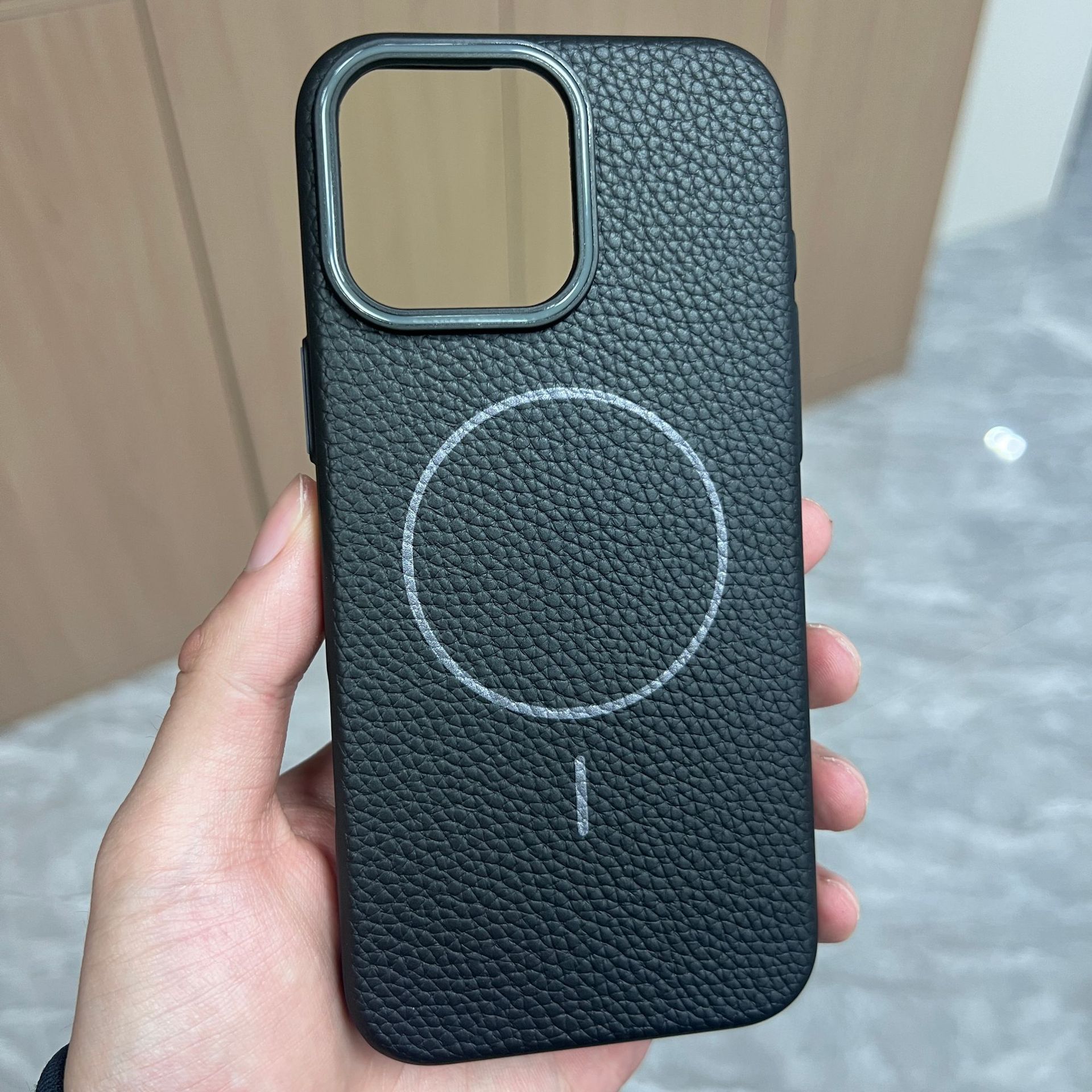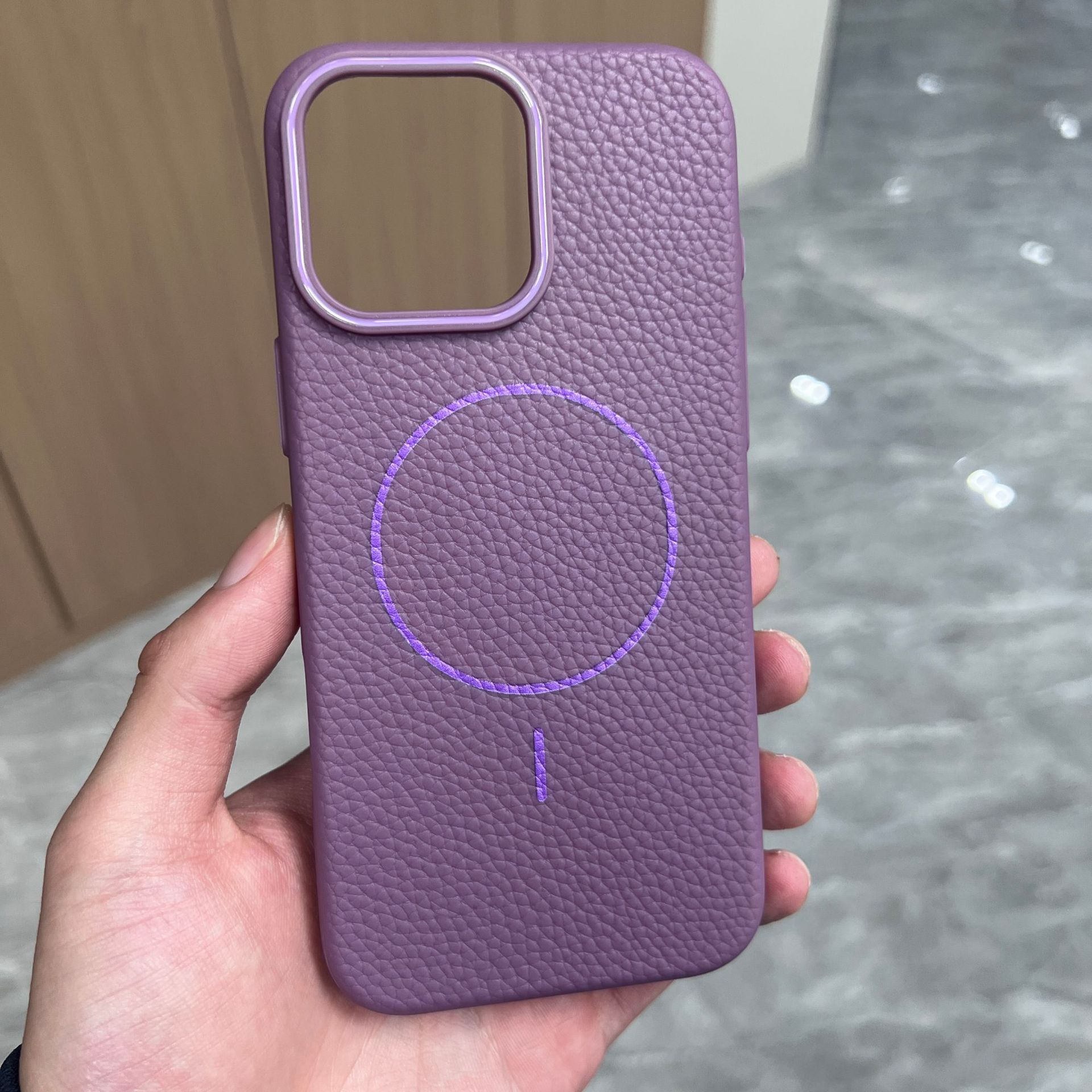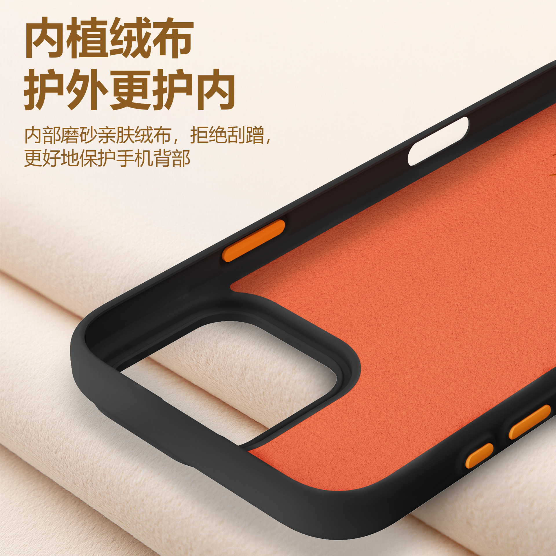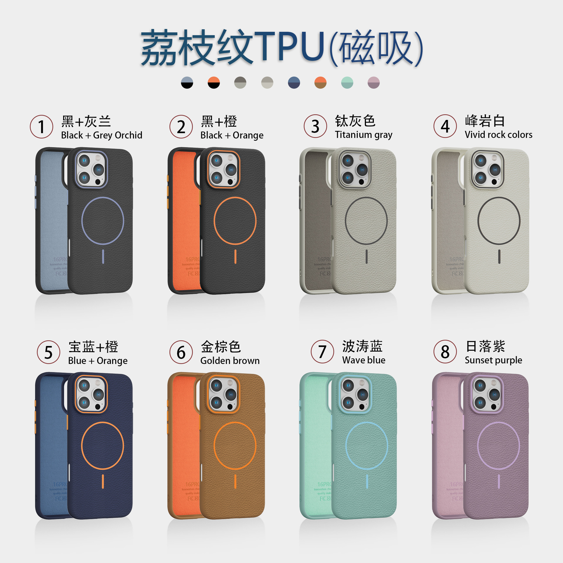 适用于苹果16新配色细磁吸圈荔枝纹TPU手机壳带绒布全包手机壳