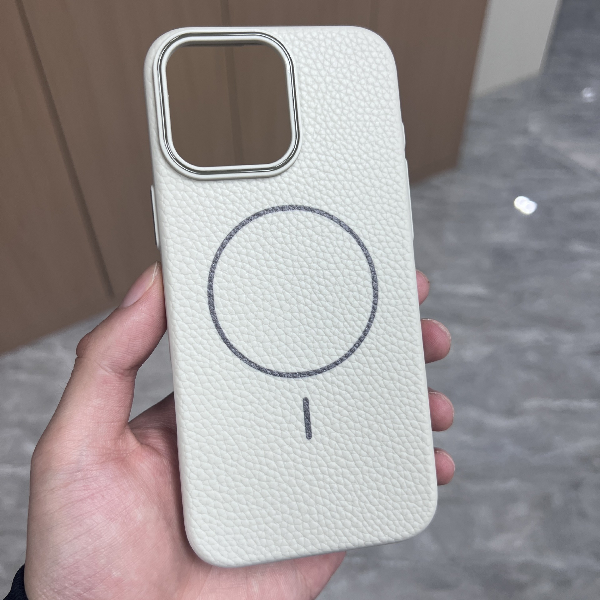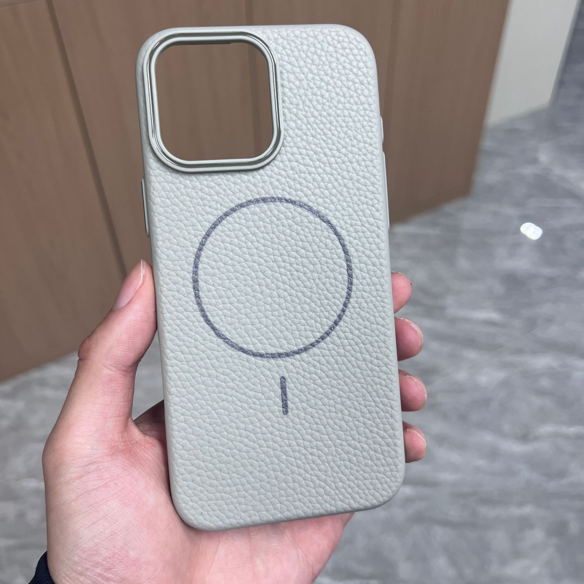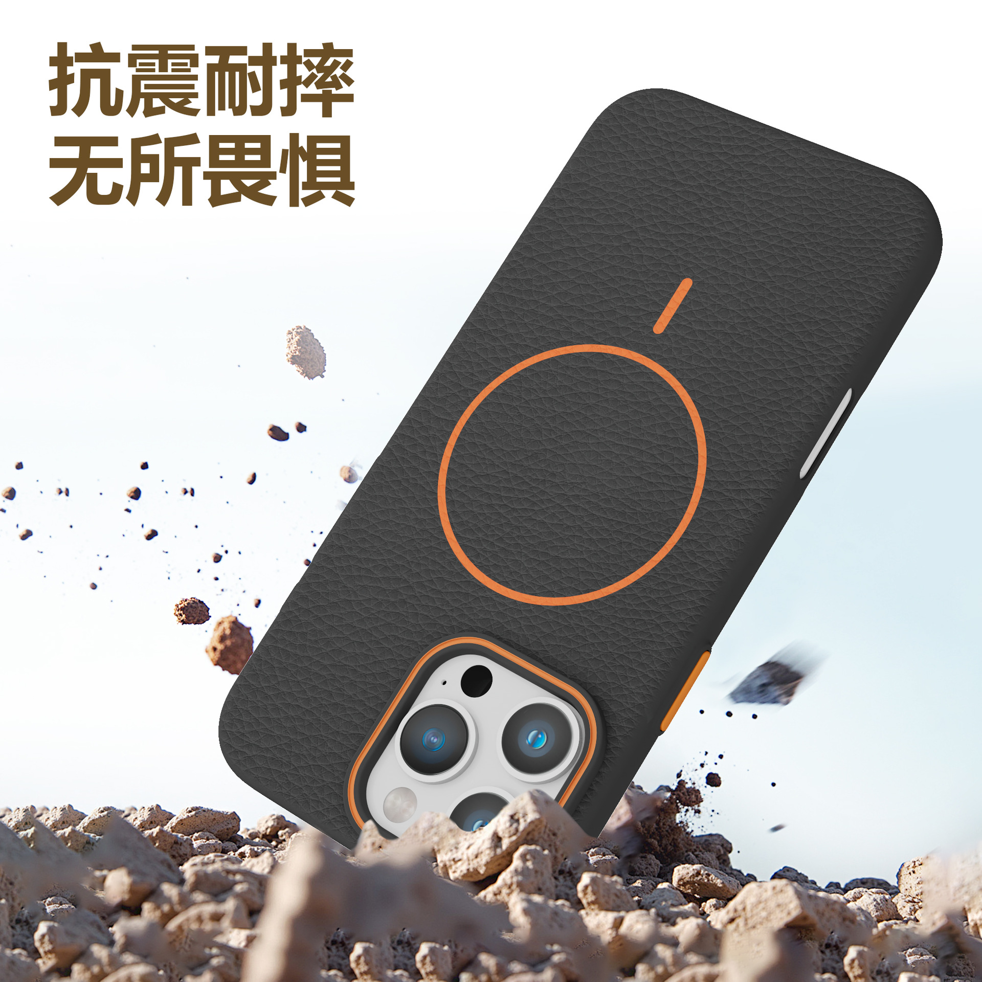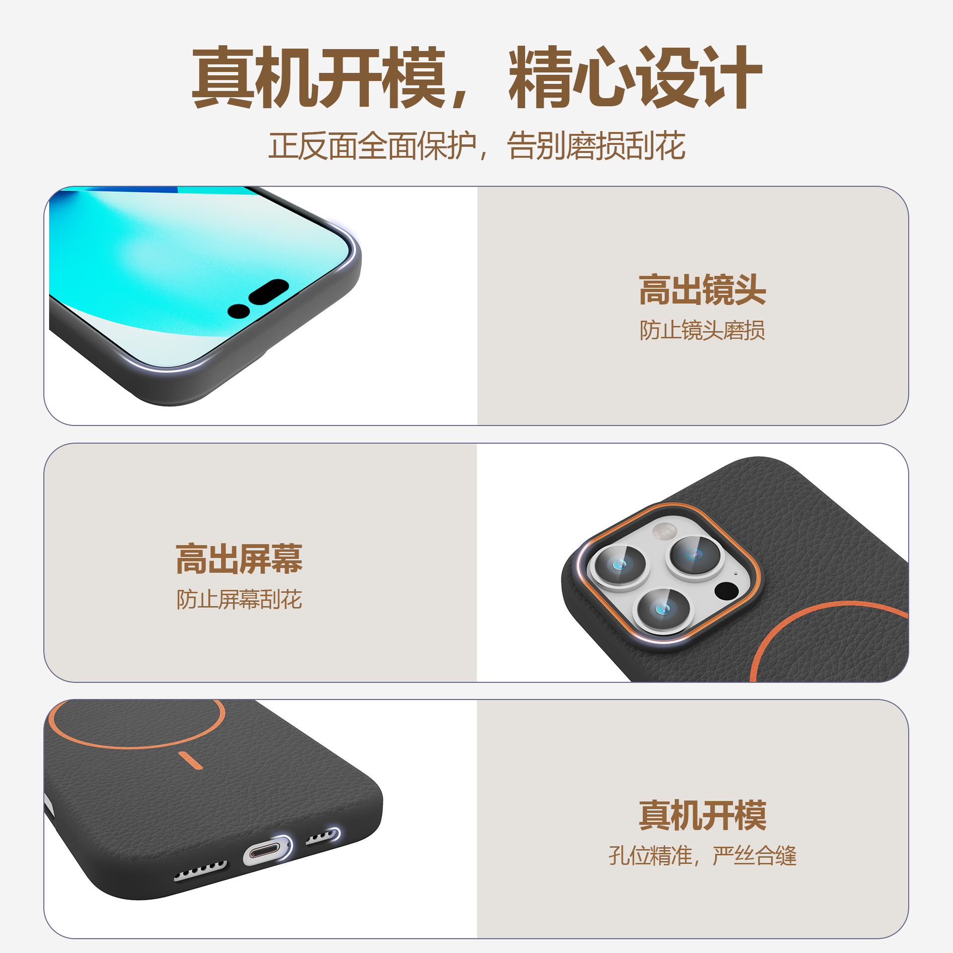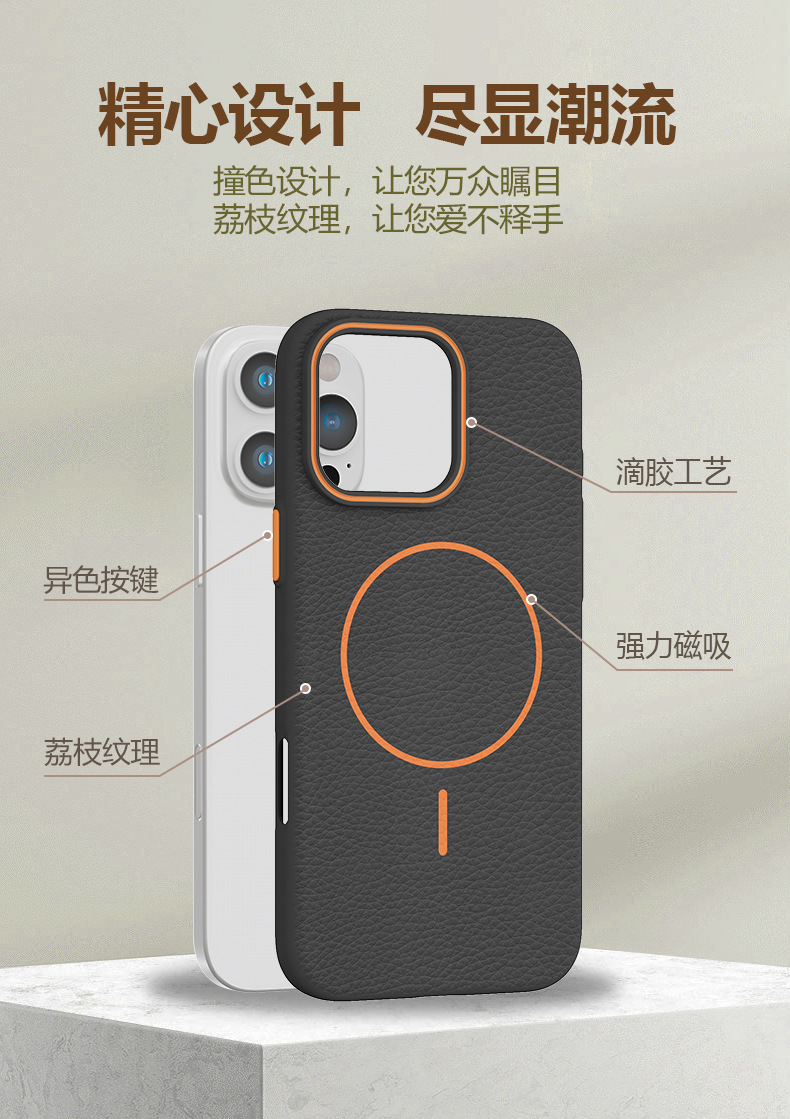 适用于苹果16新配色细磁吸圈荔枝纹TPU手机壳带绒布全包手机壳
