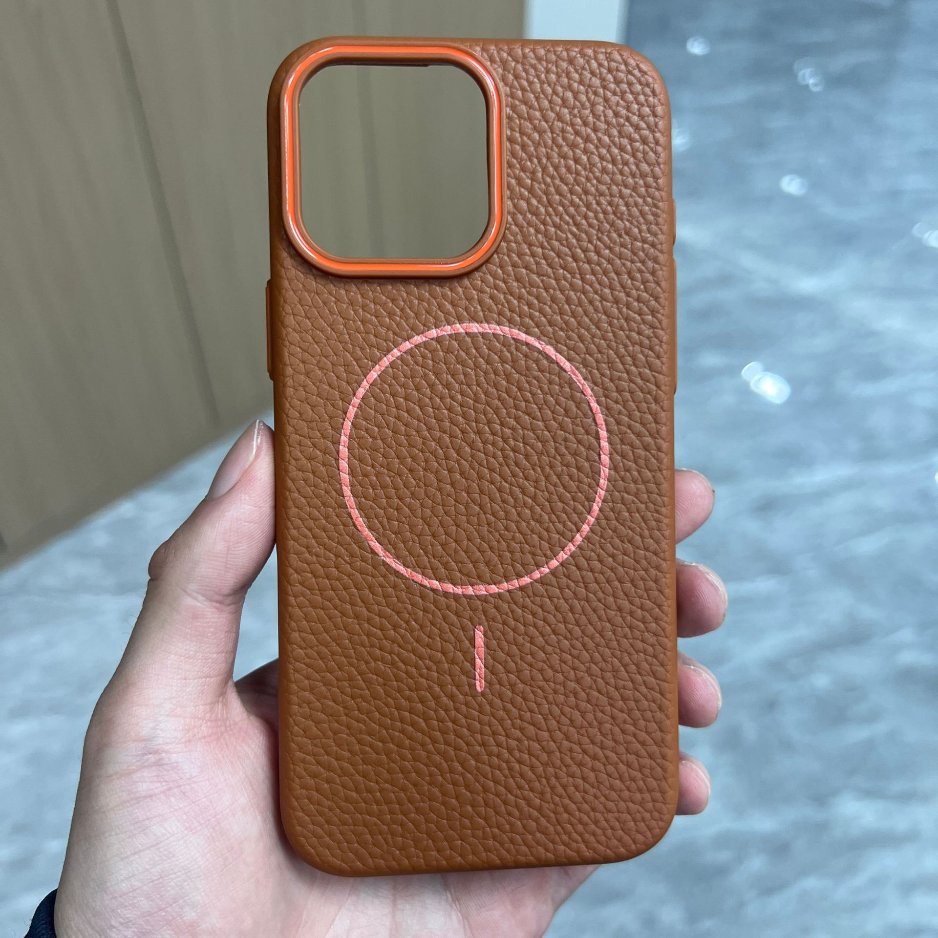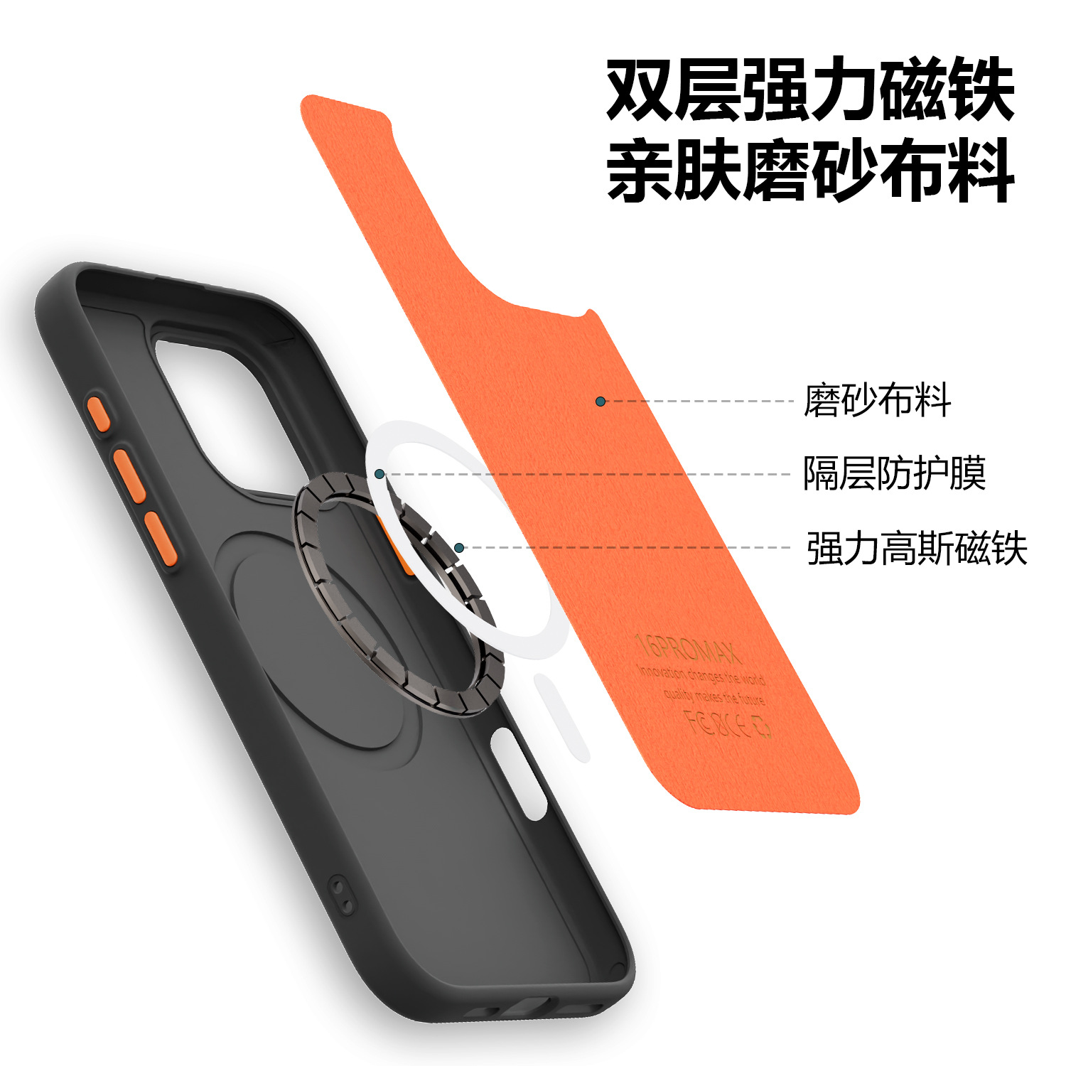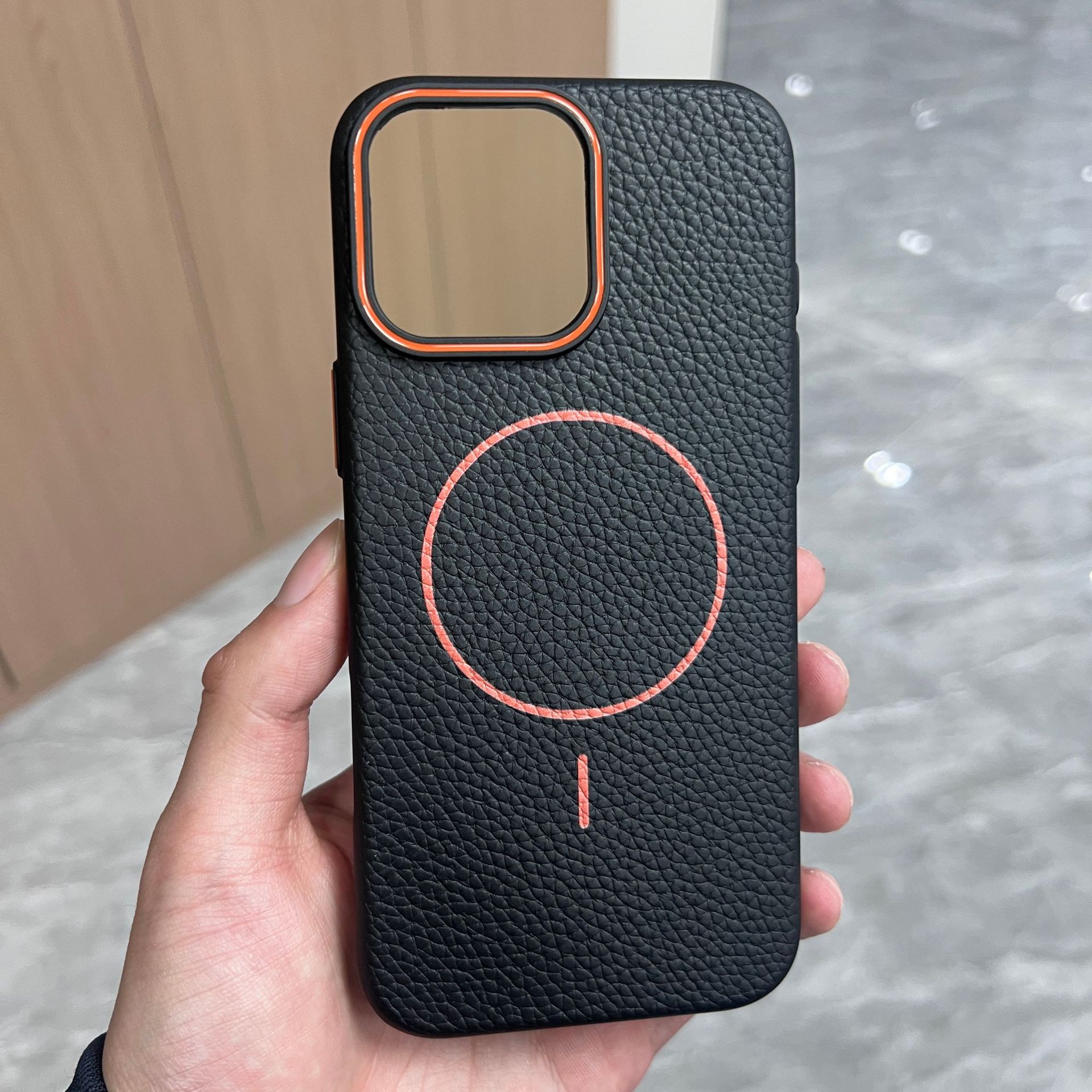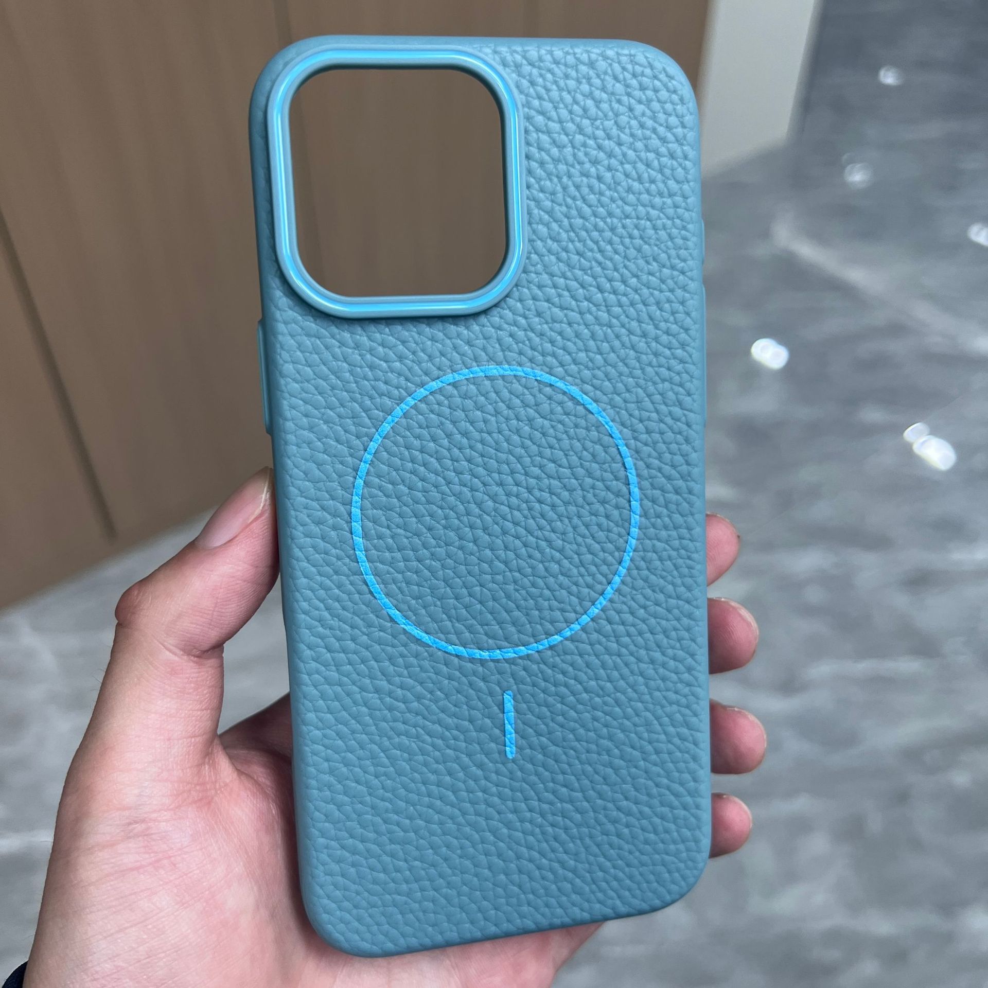 适用于苹果16新配色细磁吸圈荔枝纹TPU手机壳带绒布全包手机壳