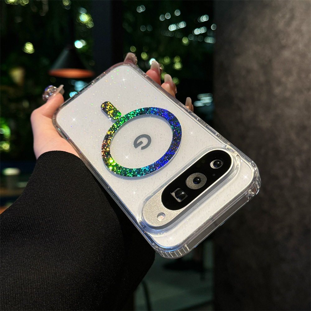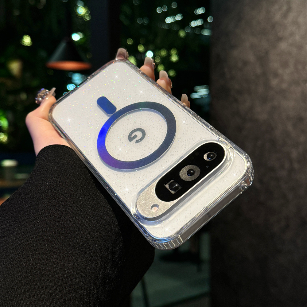 适用Google10手机壳谷歌9pro终结者9roXL闪粉磁吸透明壳跨境保护