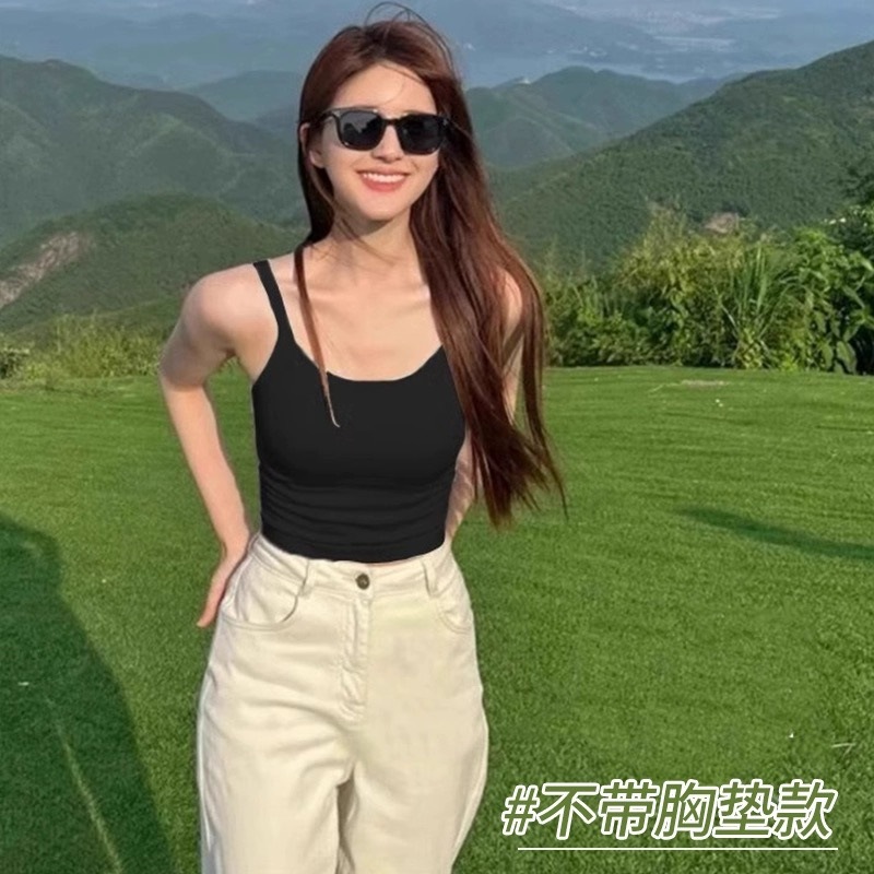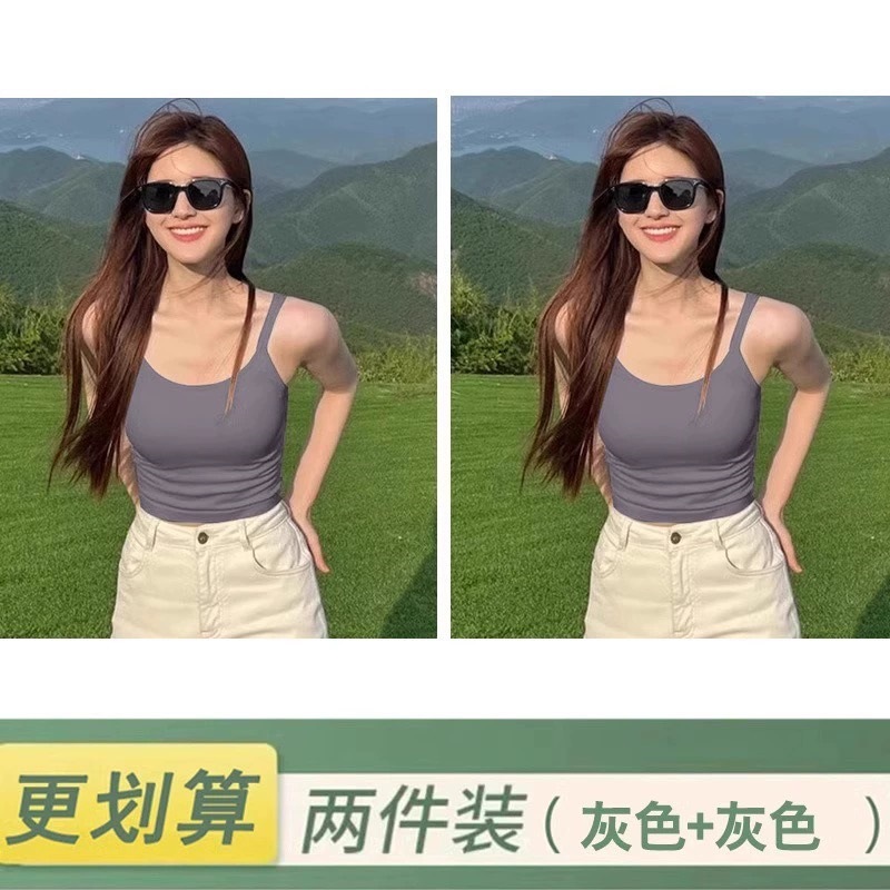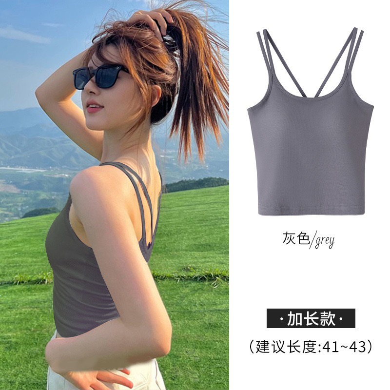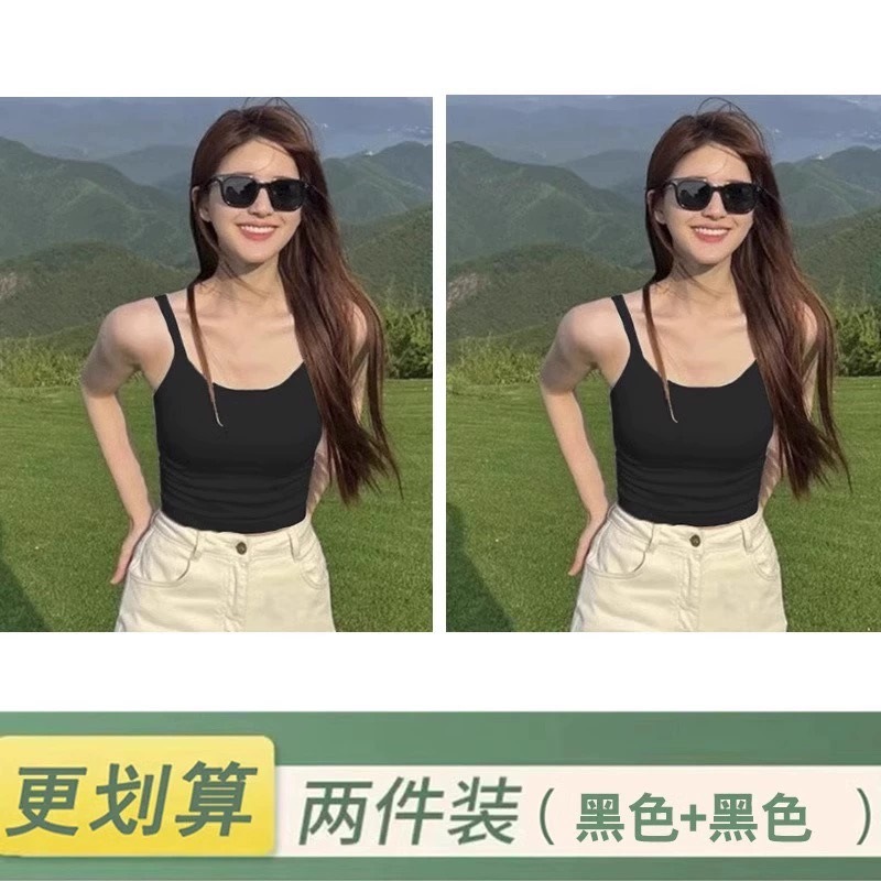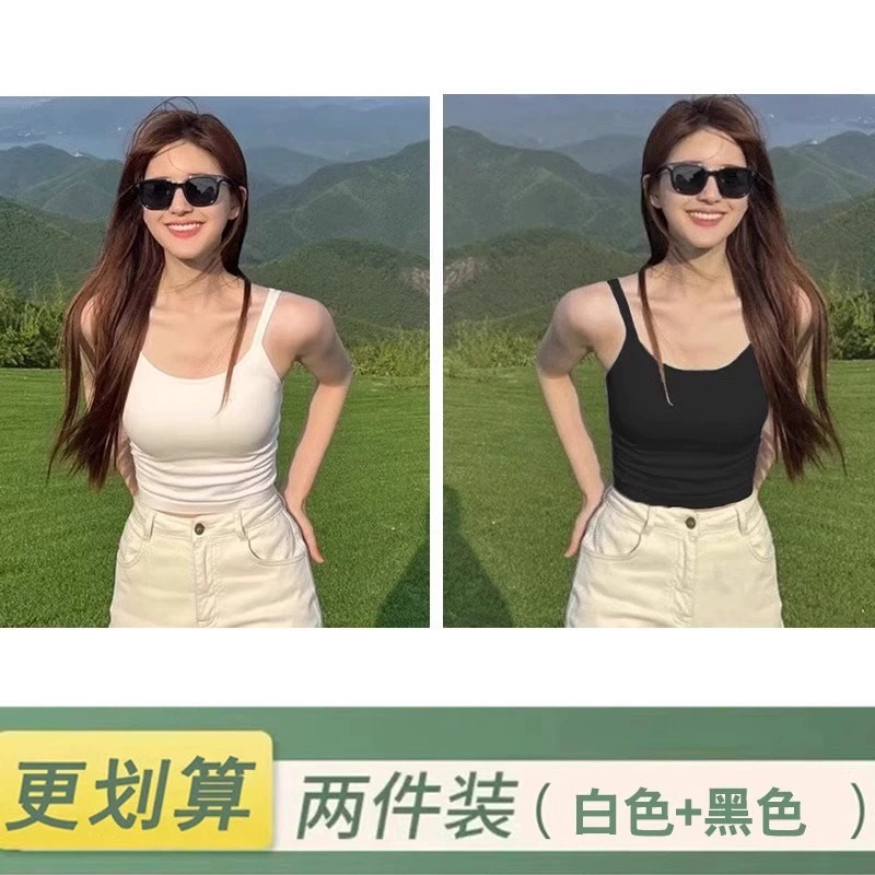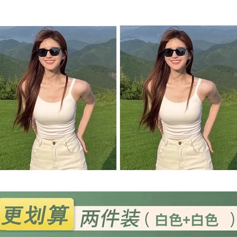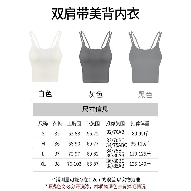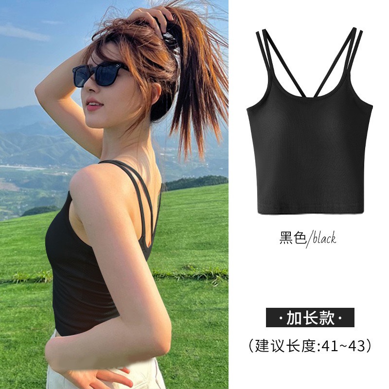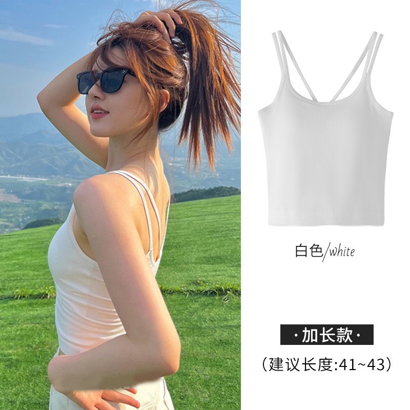 双肩带吊带背心内搭女夏带胸垫外穿打底瑜伽白色美背内衣一体上衣