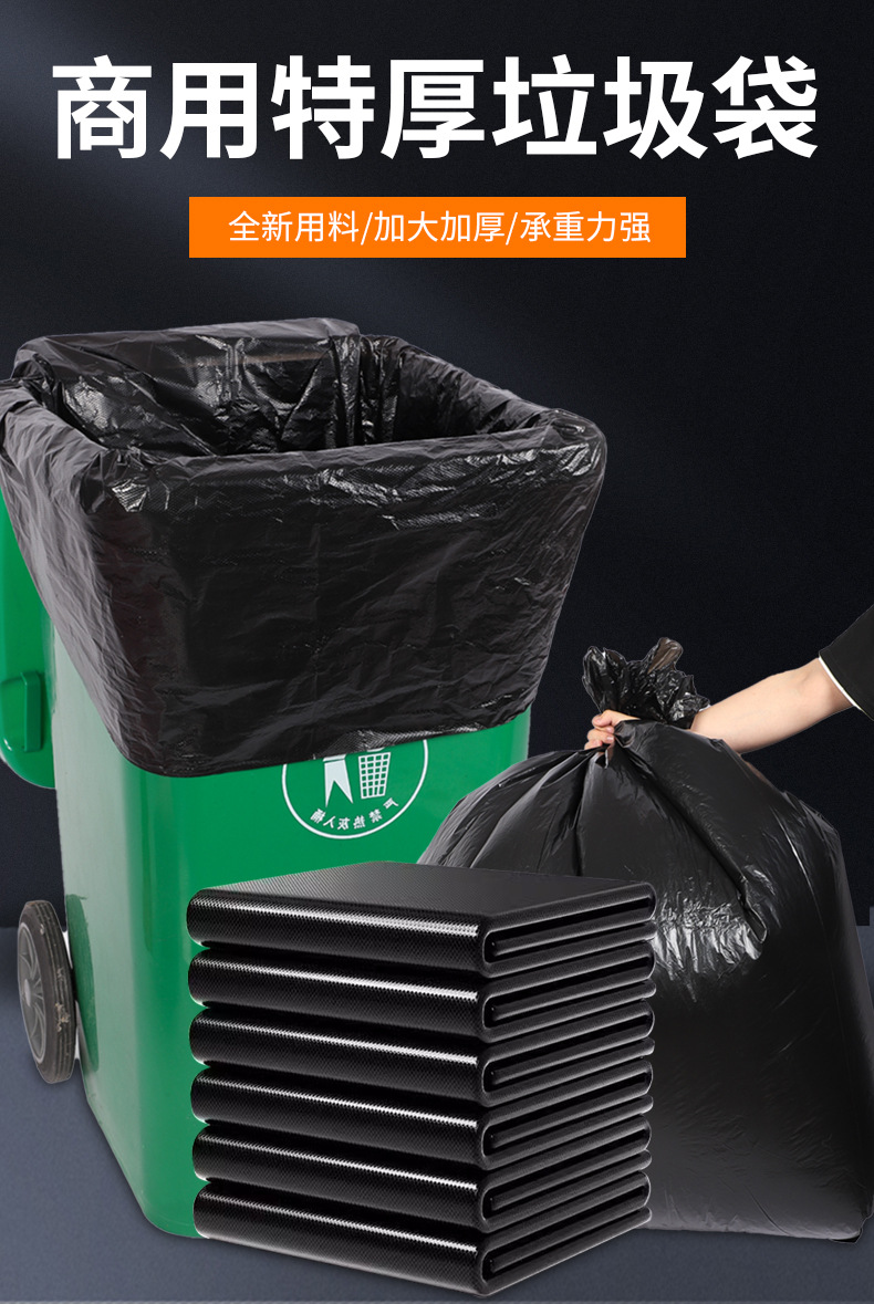 酒店环卫物业加厚垃圾袋多规格黑色平口大垃圾袋