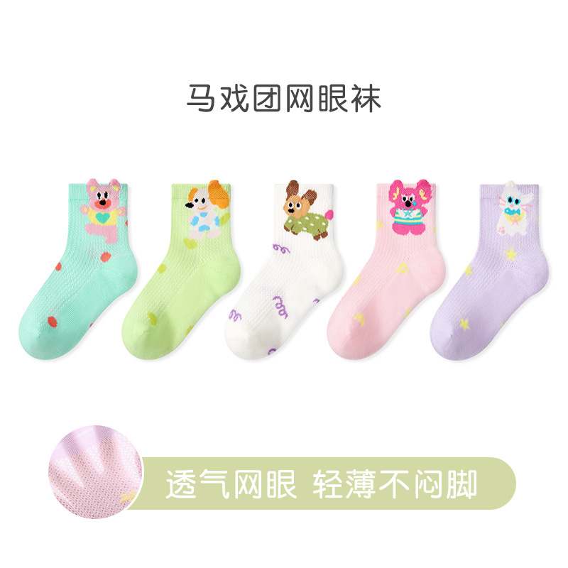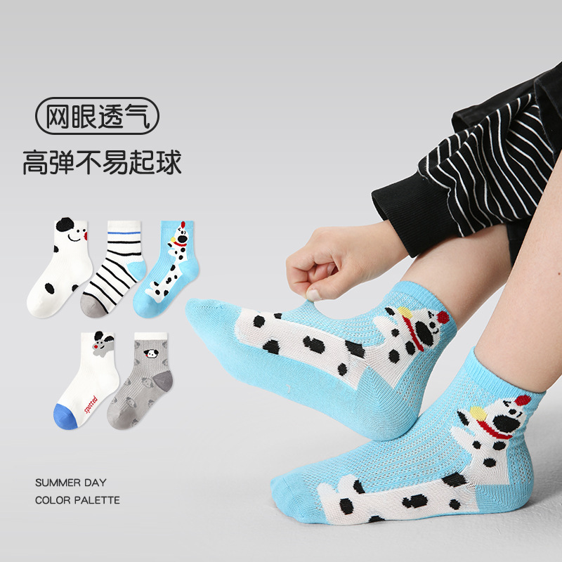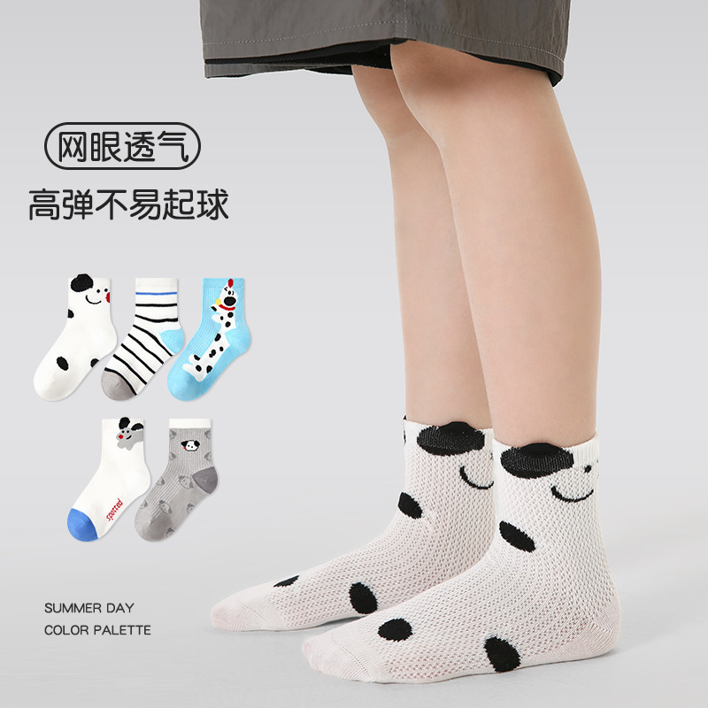 儿童袜子批发2025春夏薄款透气网眼袜棉无骨条纹波点小狗男童袜子