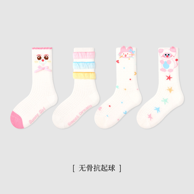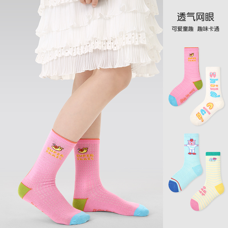 儿童袜子批发2025夏季薄款彩虹字母宝宝短袜棉女童百搭网眼中筒袜