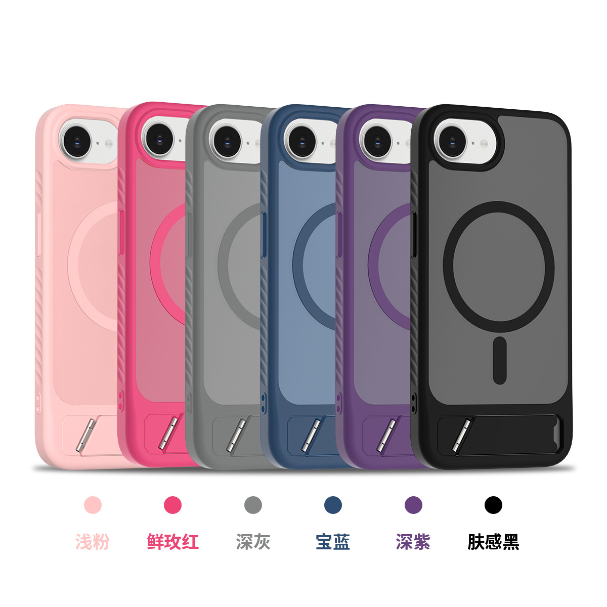 跨境适用苹果16E支架磁吸磨砂16pro手机壳二合一防摔肤感15手机套