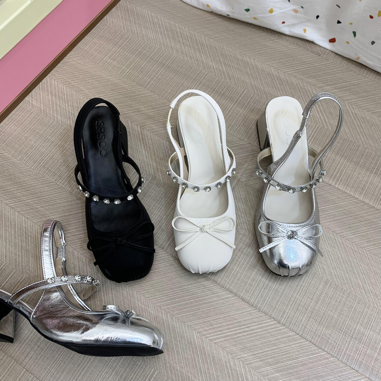 高跟鞋粗跟银色包头凉鞋女新款夏季配裙子玛丽珍中跟单鞋