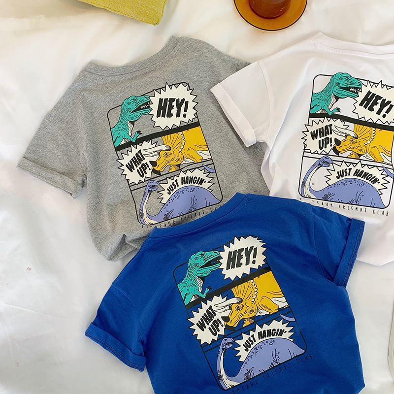 纯棉100%儿童卡通短袖圆领T恤新款恐龙印花男女宝宝宽松上衣