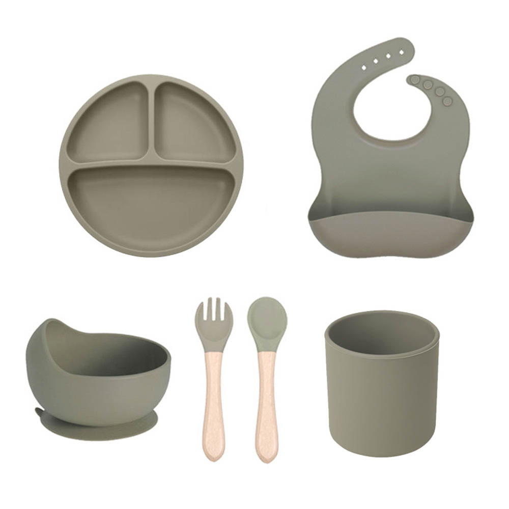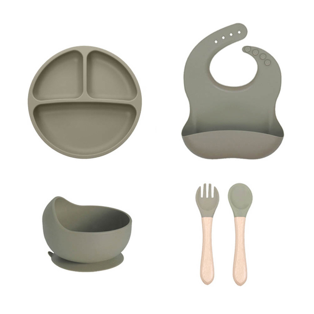 跨境儿童硅胶餐盘套装宝宝辅食分格餐盘爱心餐盘母婴喂养餐具套装