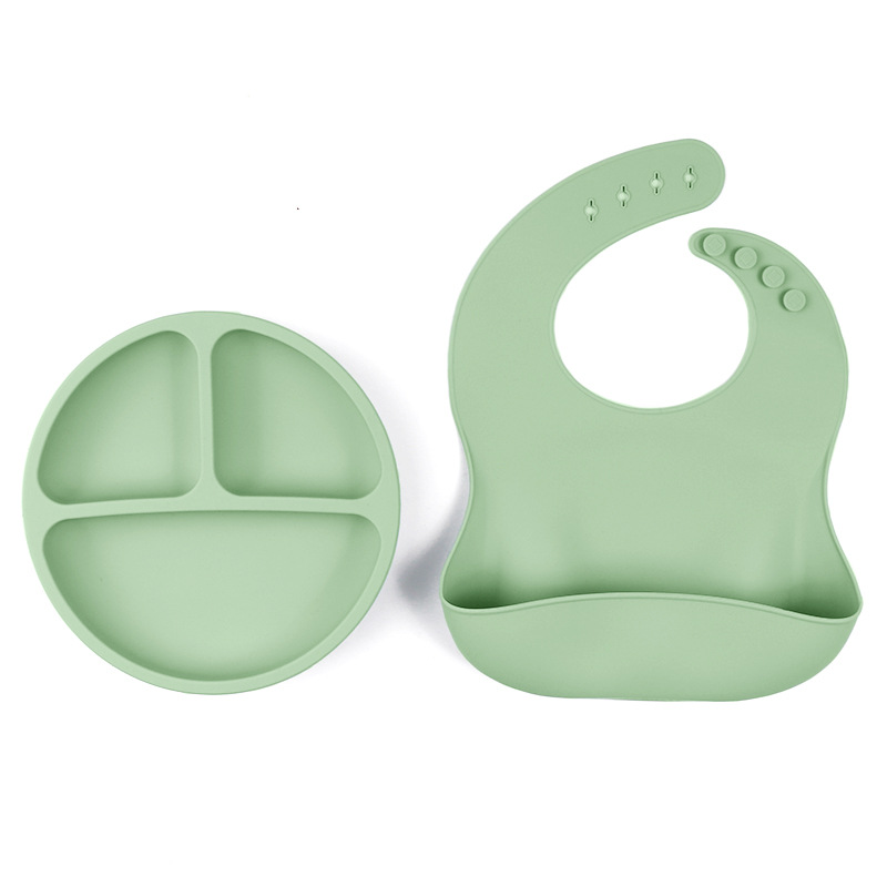 硅胶餐具套装全套儿童餐盘分隔盘婴儿围兜宝宝餐盘辅食母婴用品