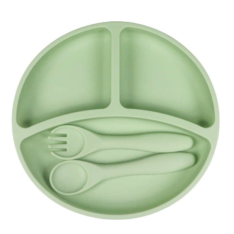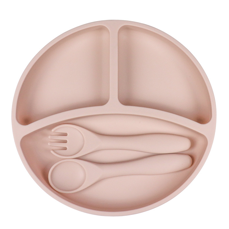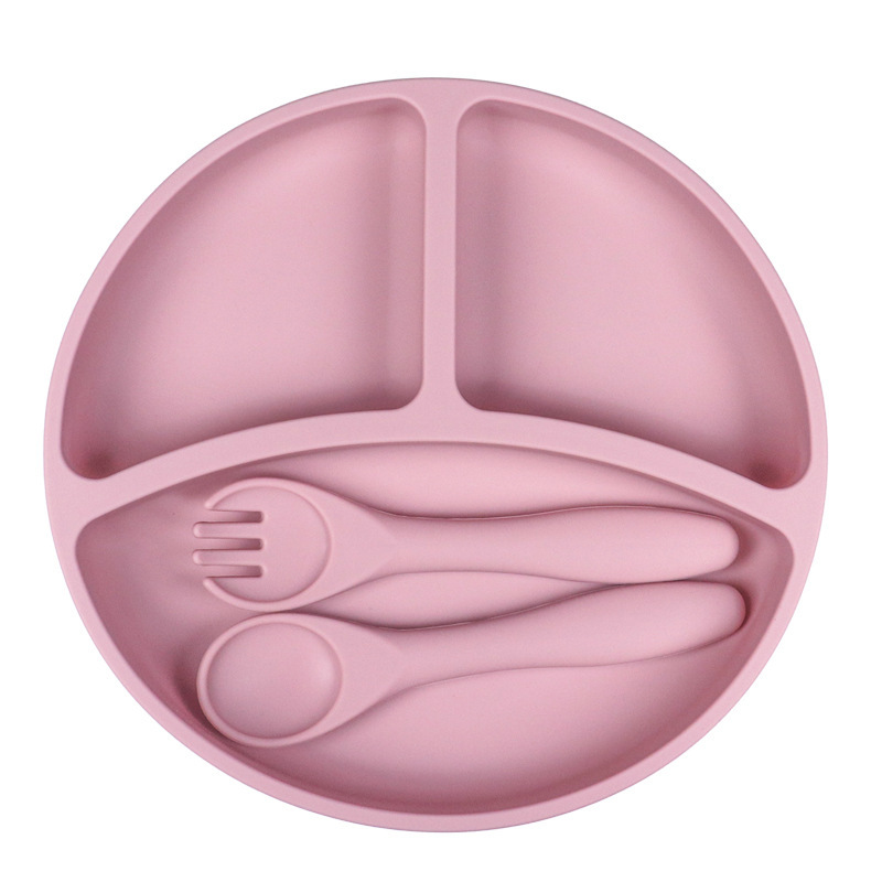 亚马逊热销圆形硅胶餐盘防摔儿童餐盘母婴喂养餐具硅胶儿童餐盘