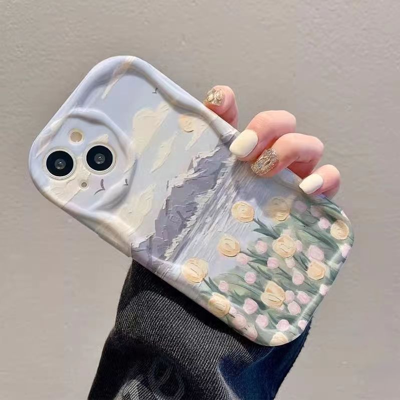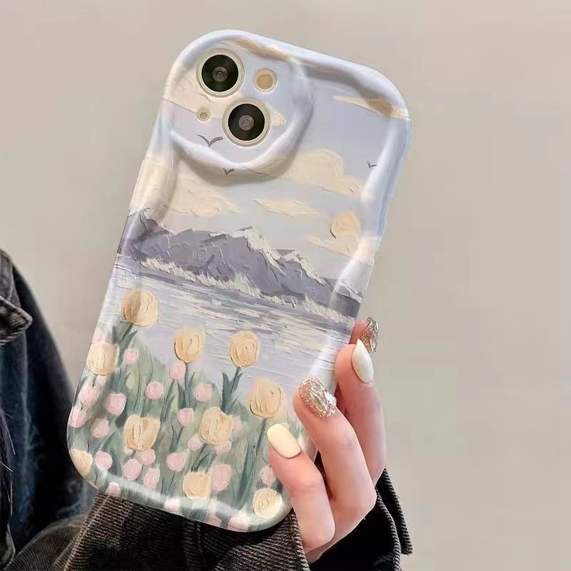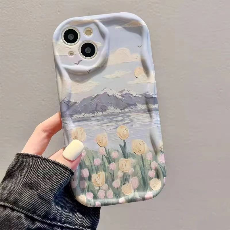 雪山郁金香适用iPhone16pro手机壳15新女款苹果14promax/13奶油纹