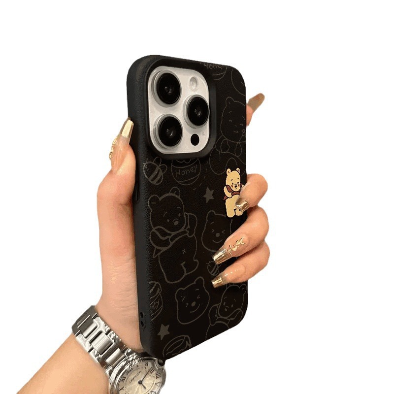 - 皮纹壳-黑色-线条可爱维尼