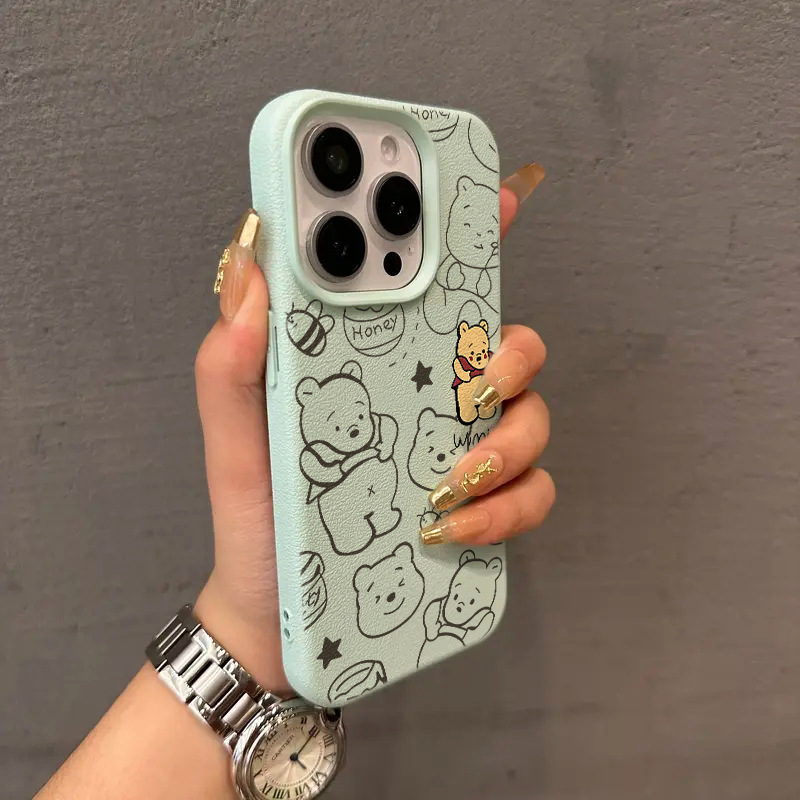 - 皮纹壳-淡青色-线条可爱维尼